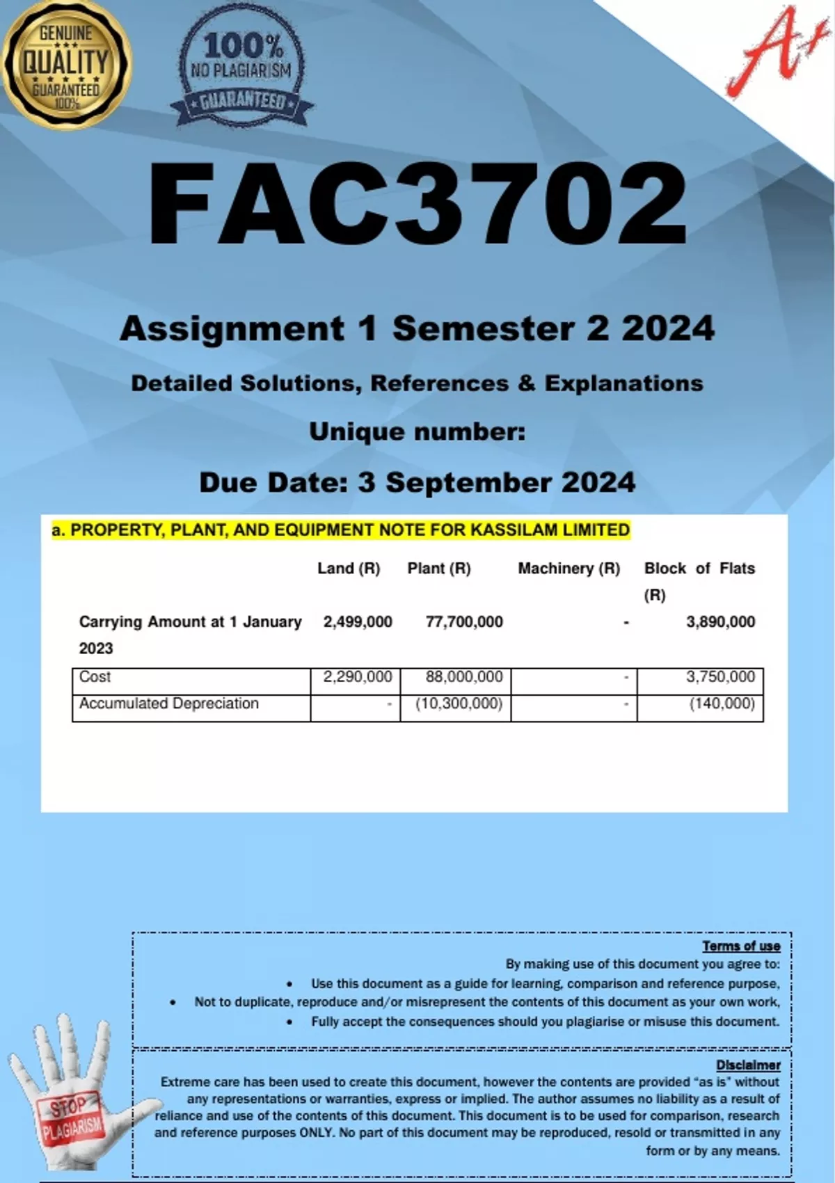 a. PROPERTY, PLANT, AND EQUIPMENT NOTE FOR KASSILAM LIMITED