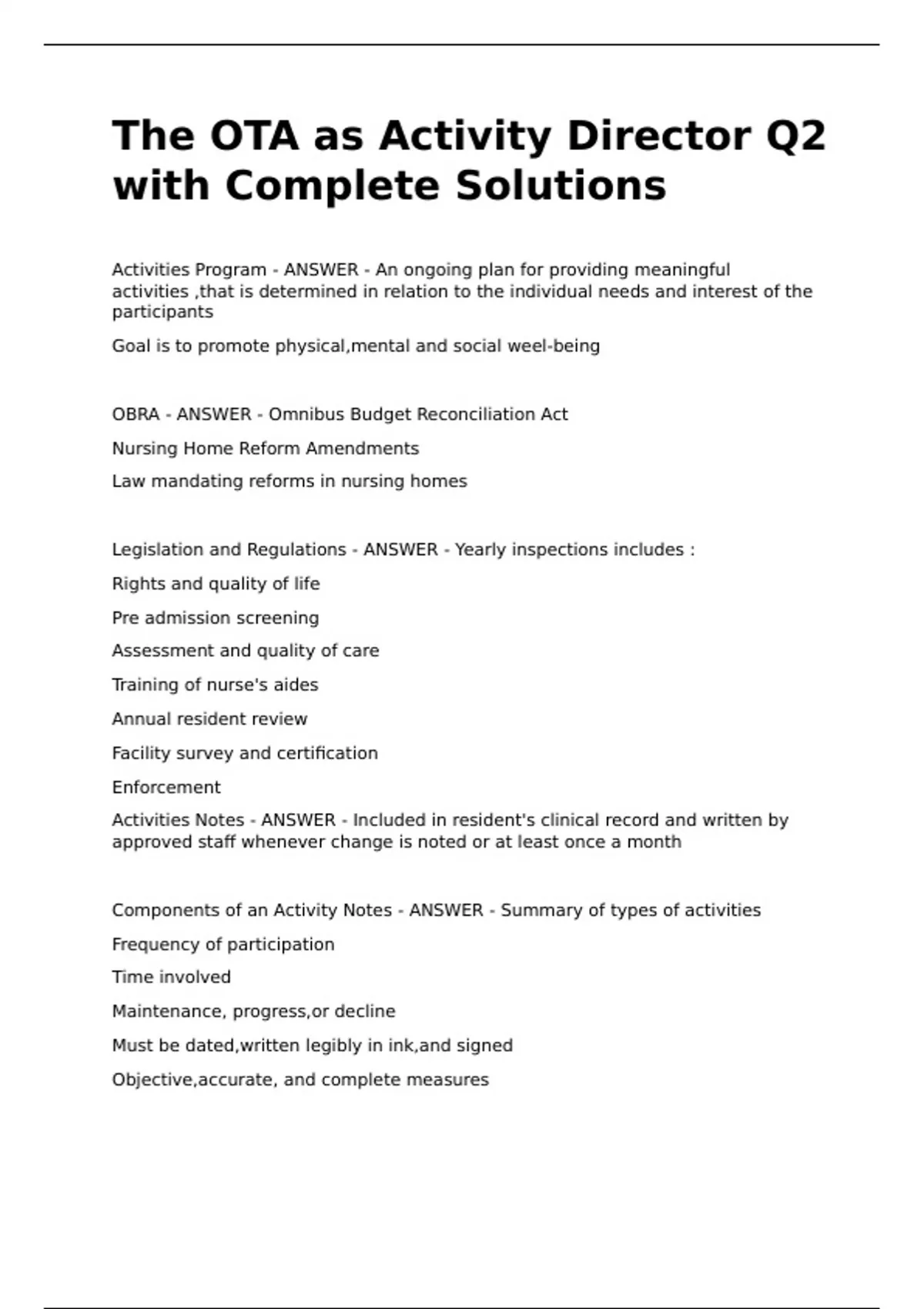 Components of an Activity Notes - ANSWER - Summary of types of activities