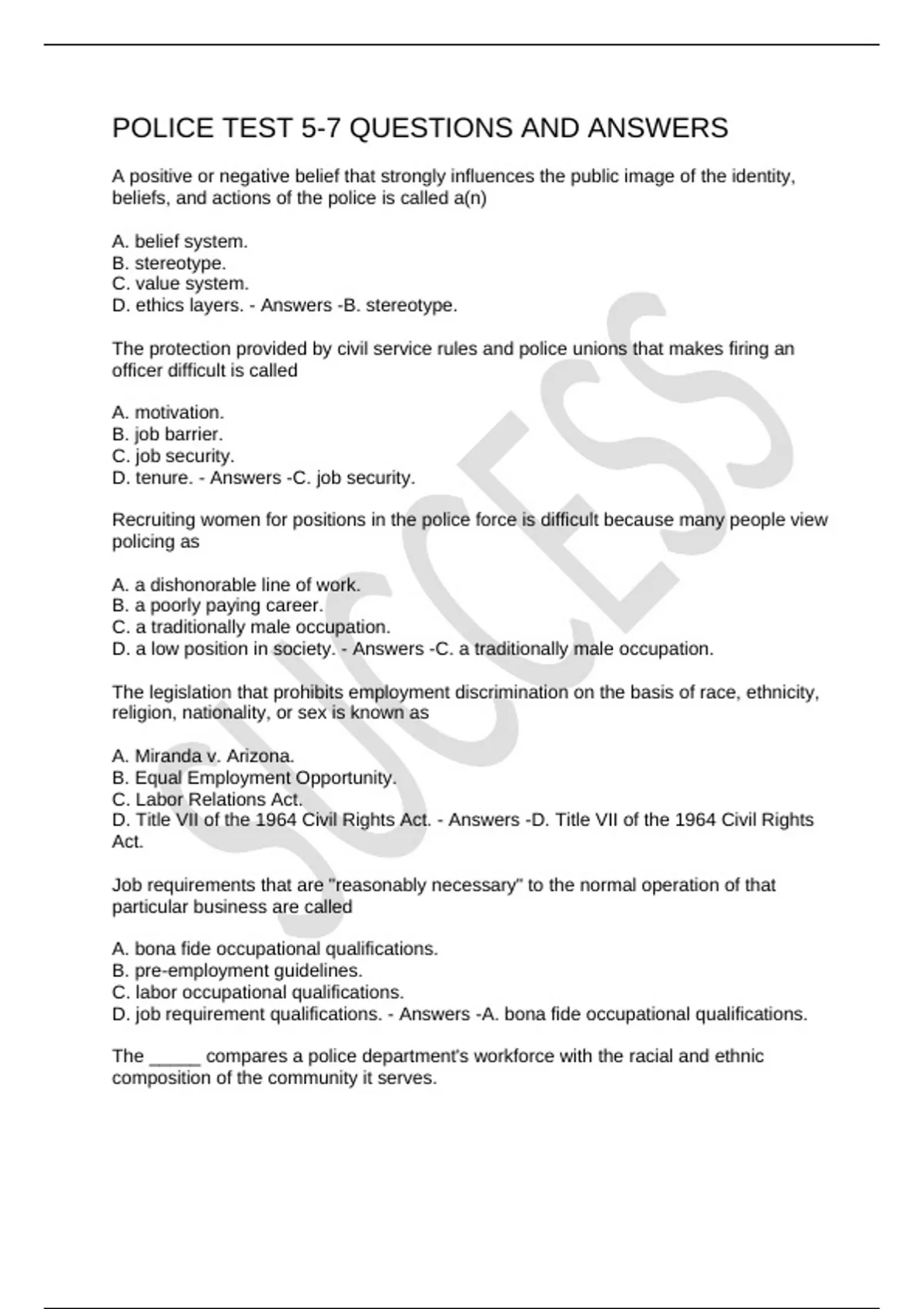 POLICE TEST 5-7 QUESTIONS AND ANSWERS
