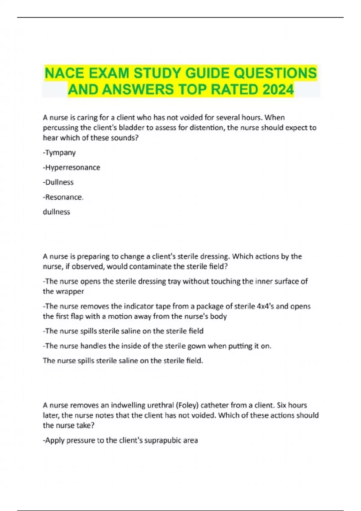 NACE EXAM STUDY GUIDE QUESTIONS AND ANSWERS TOP RATED 2024