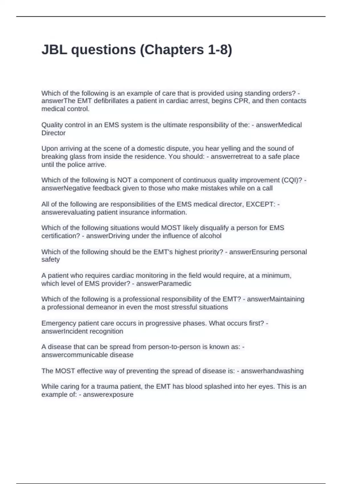 JBL questions (Chapters 1-8)