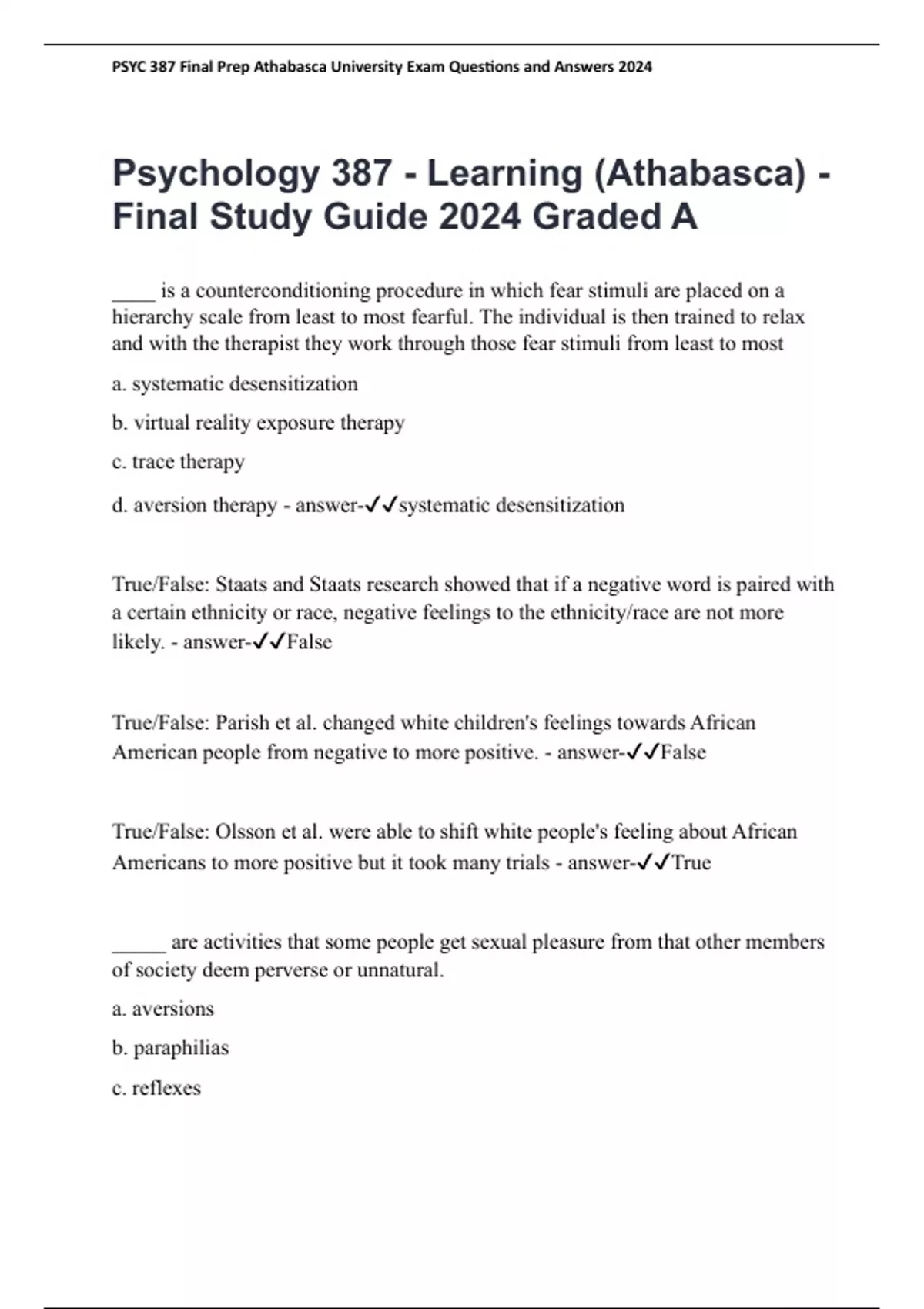 , PSYC 387 Final Prep Athabasca University Exam Questions and Answers 2024