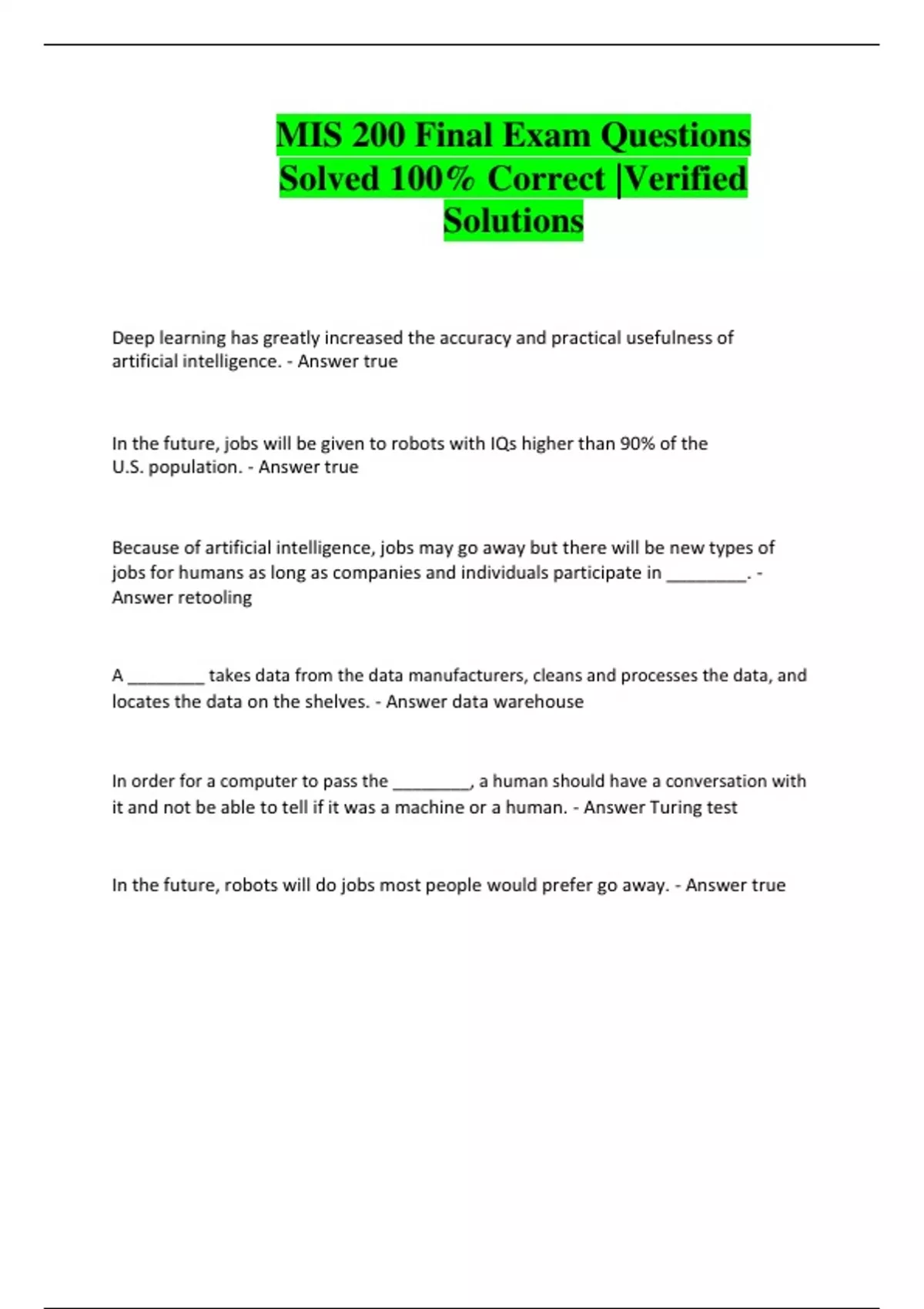 MIS 200 Final Exam Questions Solved 100% Correct |Verified Solutions