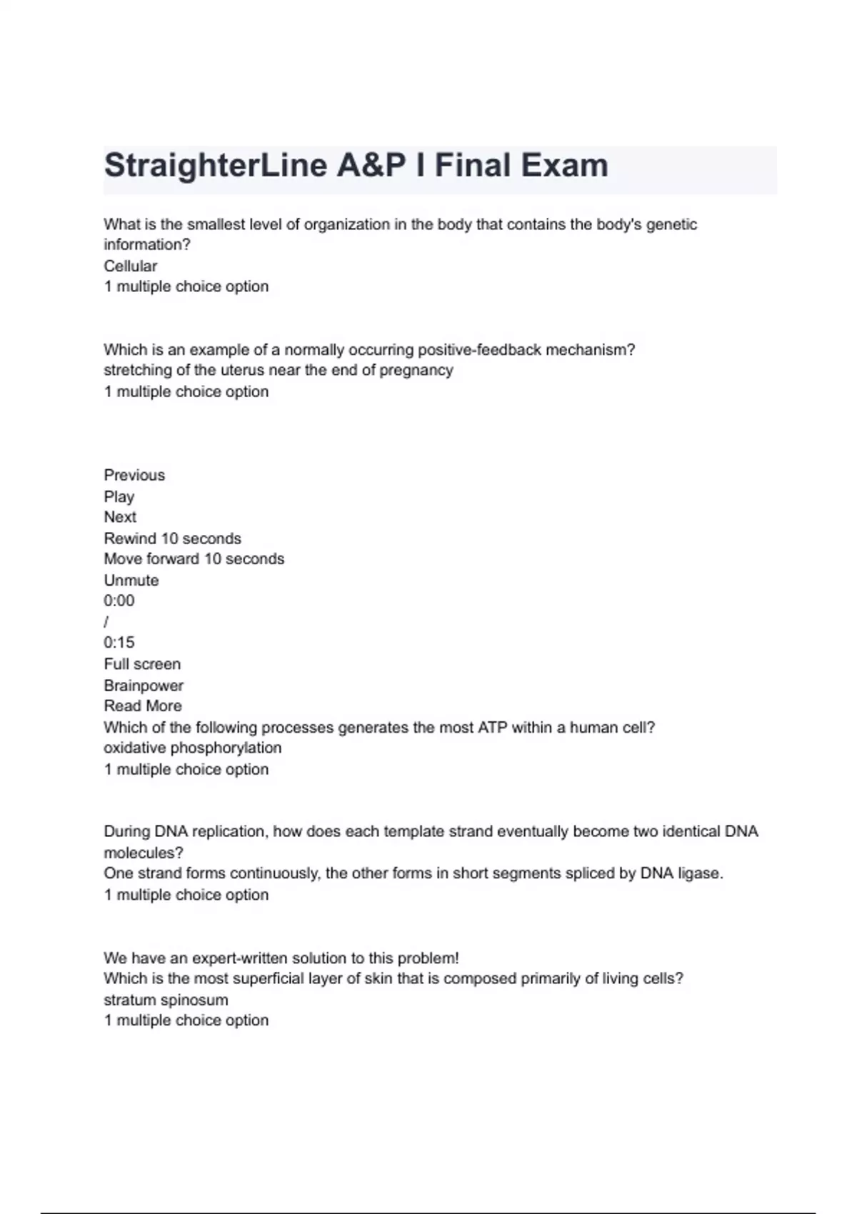 StraighterLine A&P I Final Exam Questions and Answers 2024/2025( A+ GRADED 100% VERIFIED).