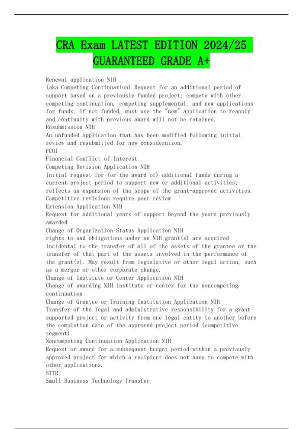Competing Revision Application NIH