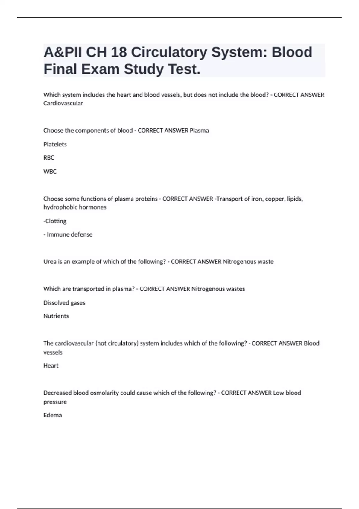 Choose the components of blood - CORRECT ANSWER Plasma