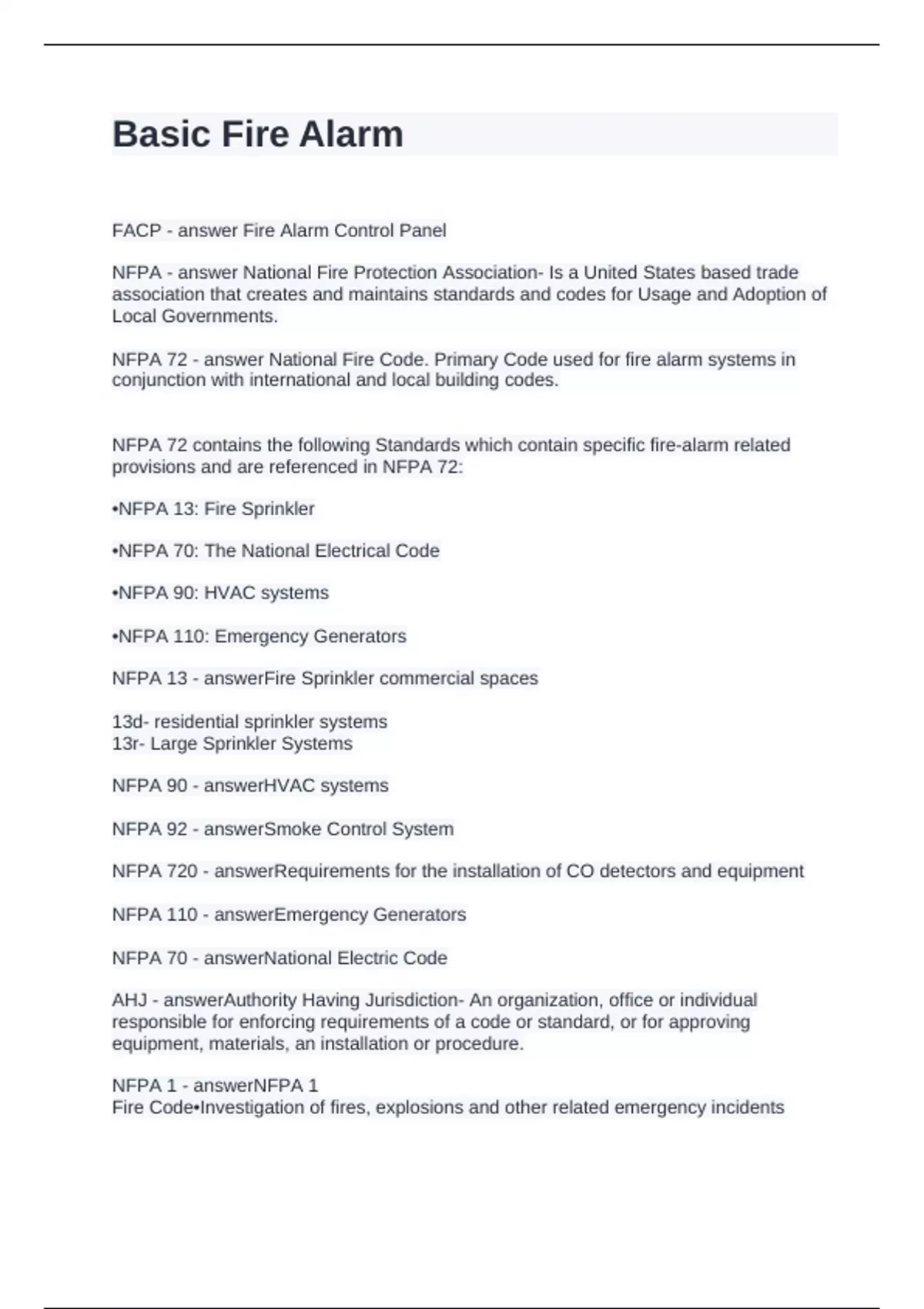 NFPA 1 - answerNFPA 1