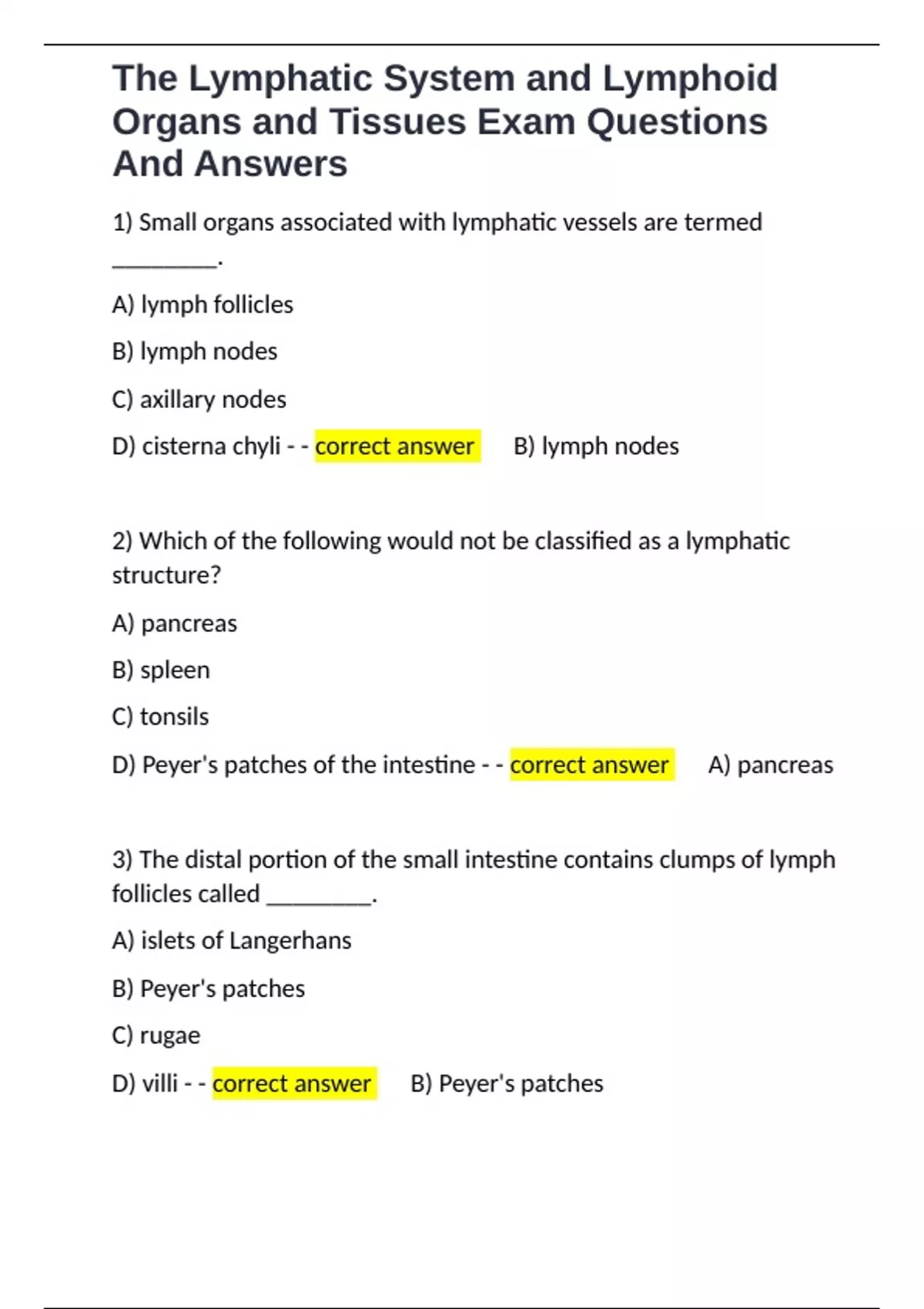D) Peyer's patches of the intestine - - correct answer ✅A) pancreas