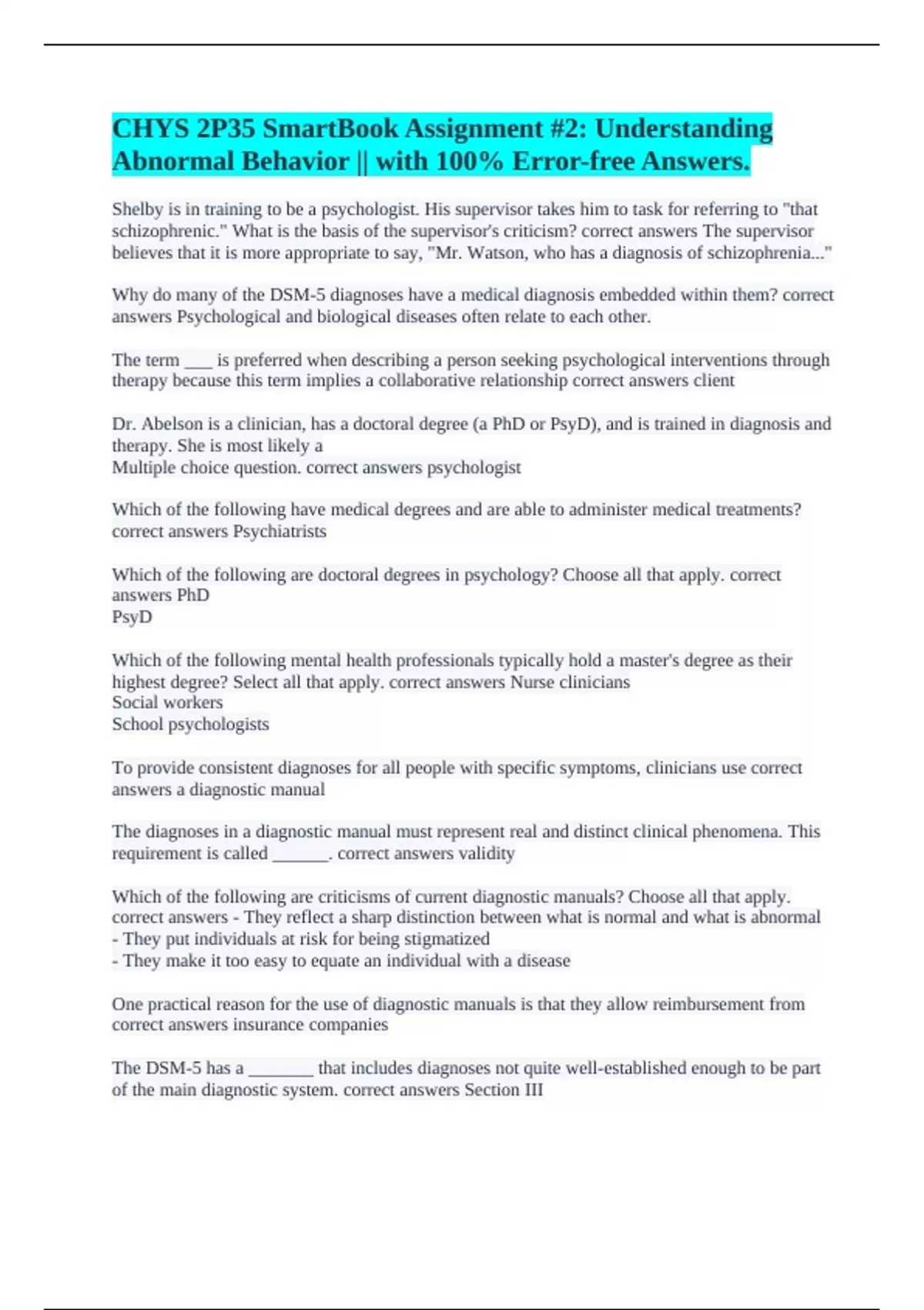 correct answers Psychiatrists