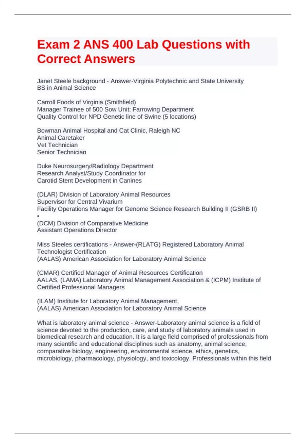 Miss Steeles certifications - Answer-(RLATG) Registered Laboratory Animal