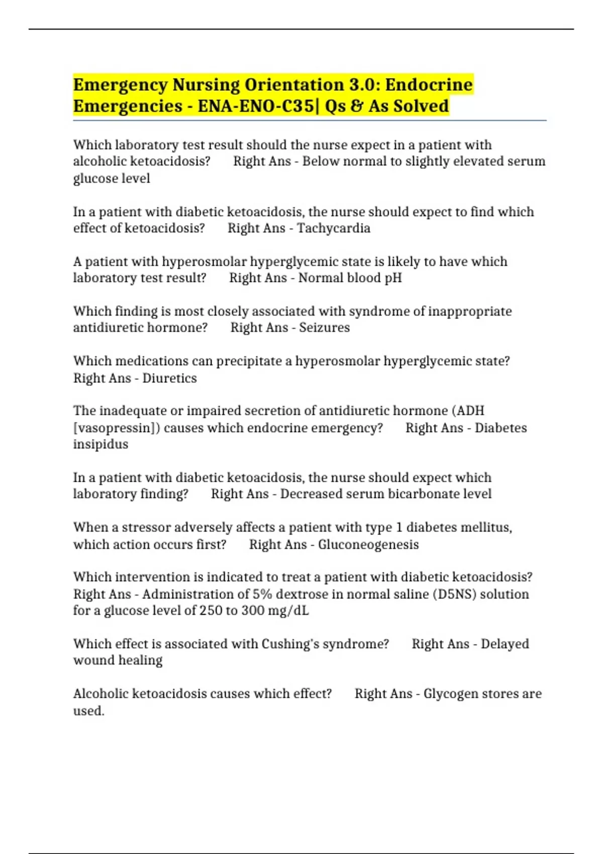 Emergencies - ENA-ENO-C35| Qs & As Solved