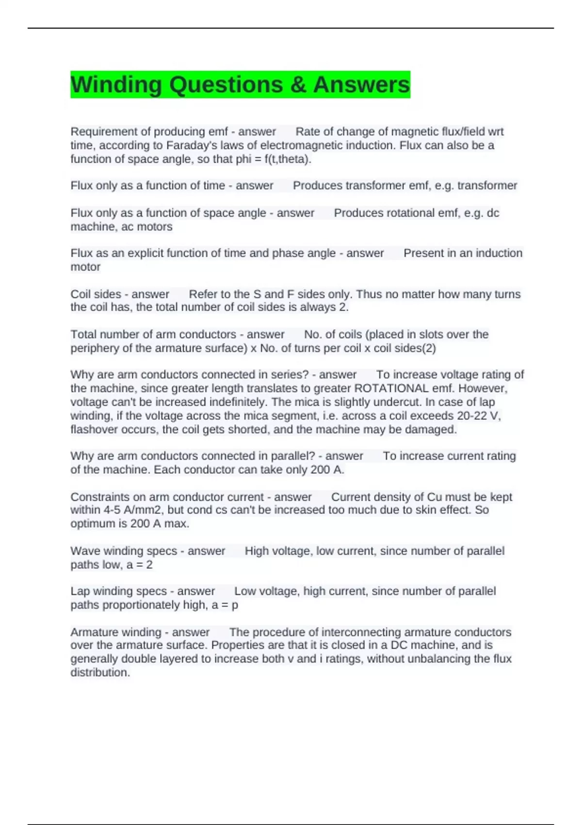 Lap winding specs - answer Low voltage, high current, since number of parallel