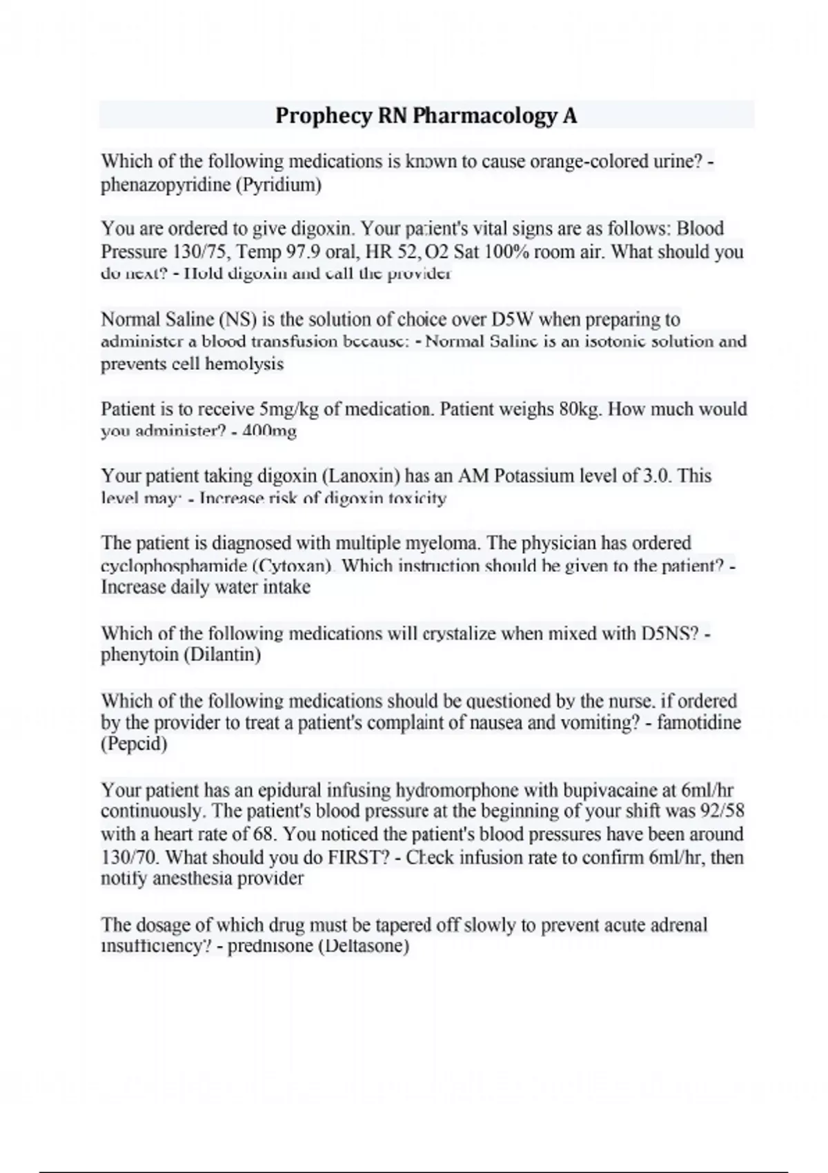 Prophecy RN Pharmacology A
