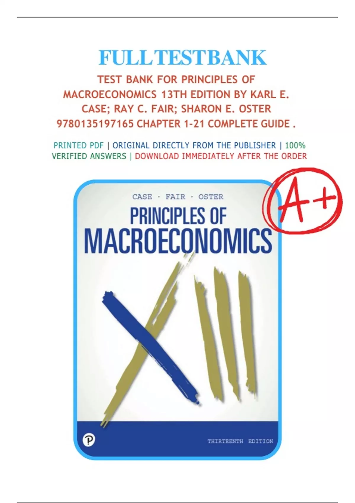 Test Bank For Principles of Macroeconomics 13th Edition By Karl E. Case; Ray C. Fair; Sharon E. Oster|9780135196984| All Chapters 1-21|LATEST
