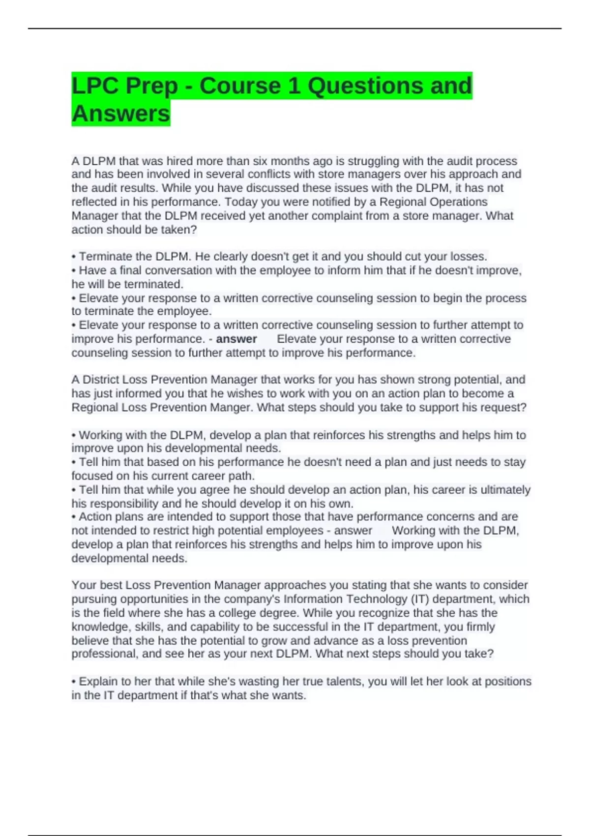 not intended to restrict high potential employees - answer Working with the DLPM,