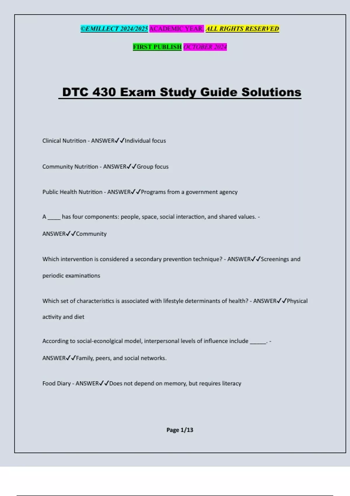 DTC 430 Exam Study Guide Solutions