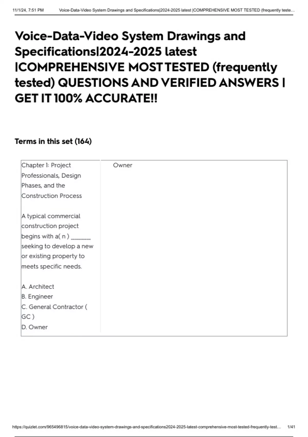 , 11/1/24, 7:51 PM Voice-Data-Video System Drawings and Specifications|2024-2025 latest |COMPREHENSIVE MOST TESTED (frequently teste…