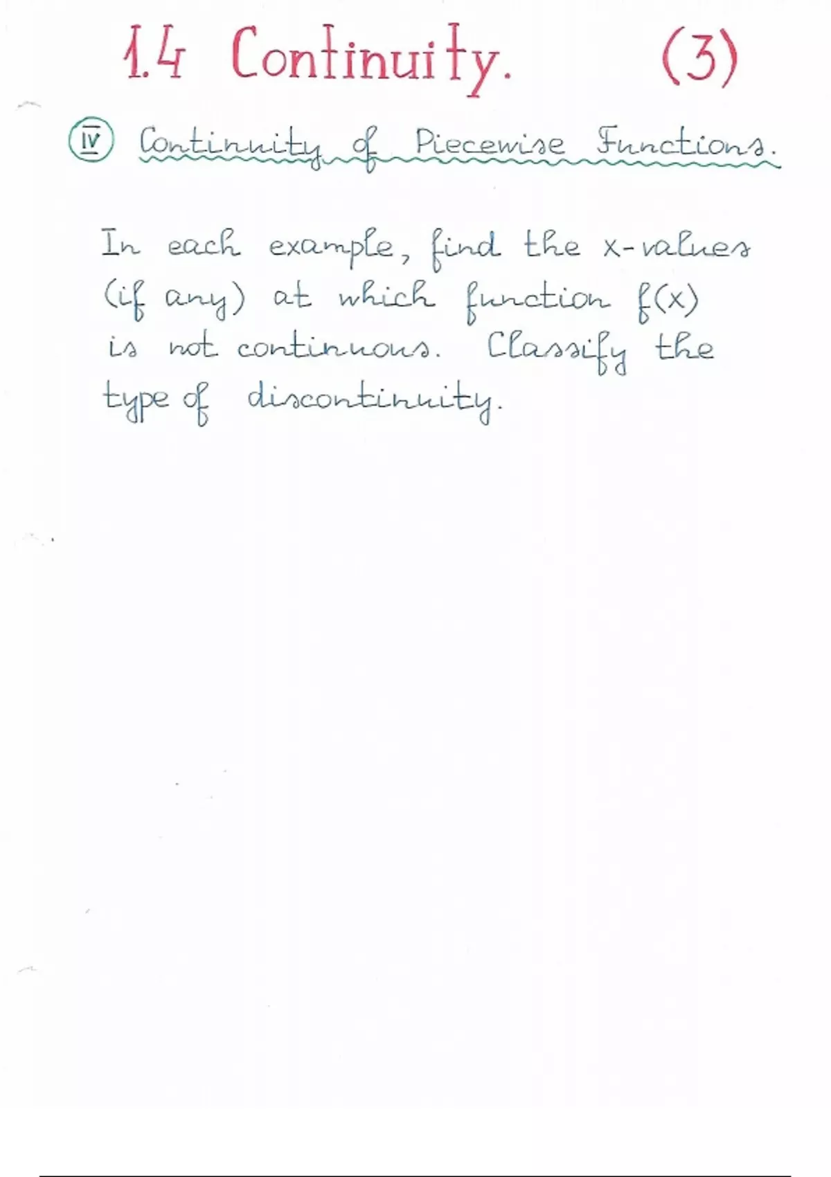 Lecture notes of 6 pages for the course Calculus at Junior / 11th grade (Continuity)