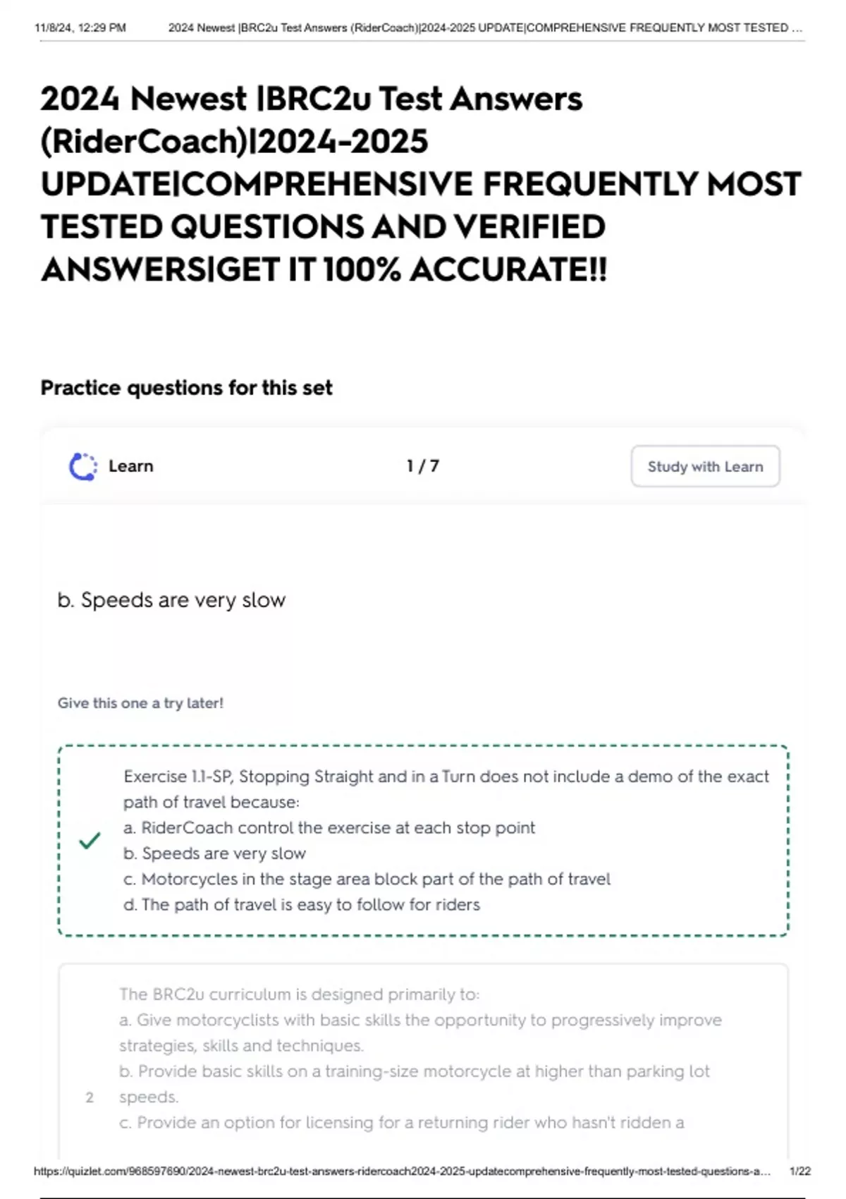 , 11/8/24, 12:29 PM 2024 Newest |BRC2u Test Answers (RiderCoach)|2024-2025 UPDATE|COMPREHENSIVE FREQUENTLY MOST TESTED …