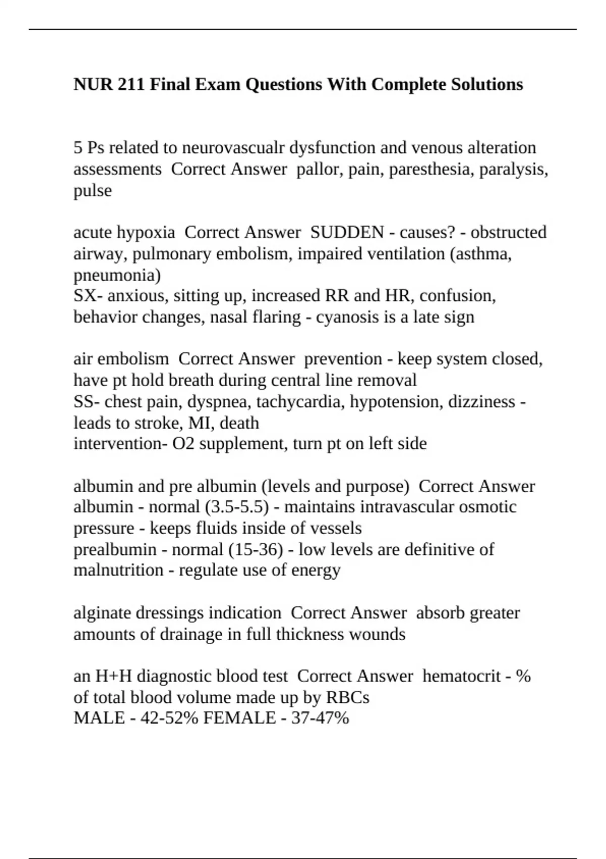 assessments Correct Answer pallor, pain, paresthesia, paralysis,