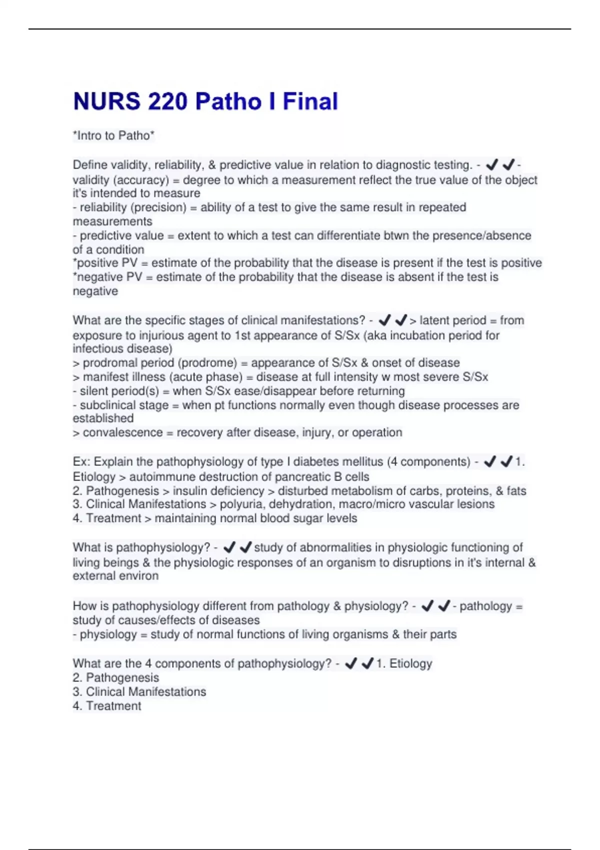 What is pathophysiology? - ✔️✔️study of abnormalities in physiologic functioning of