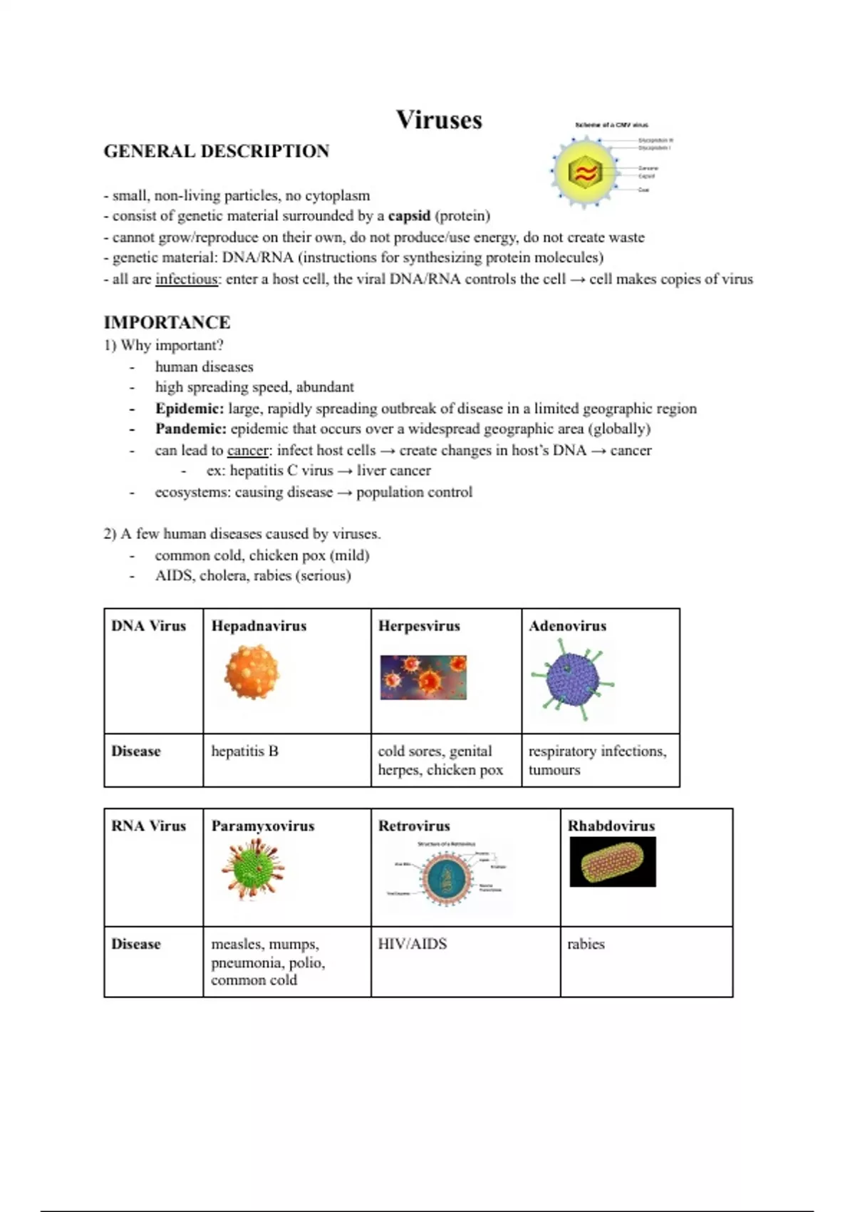 2) A few human diseases caused by viruses.