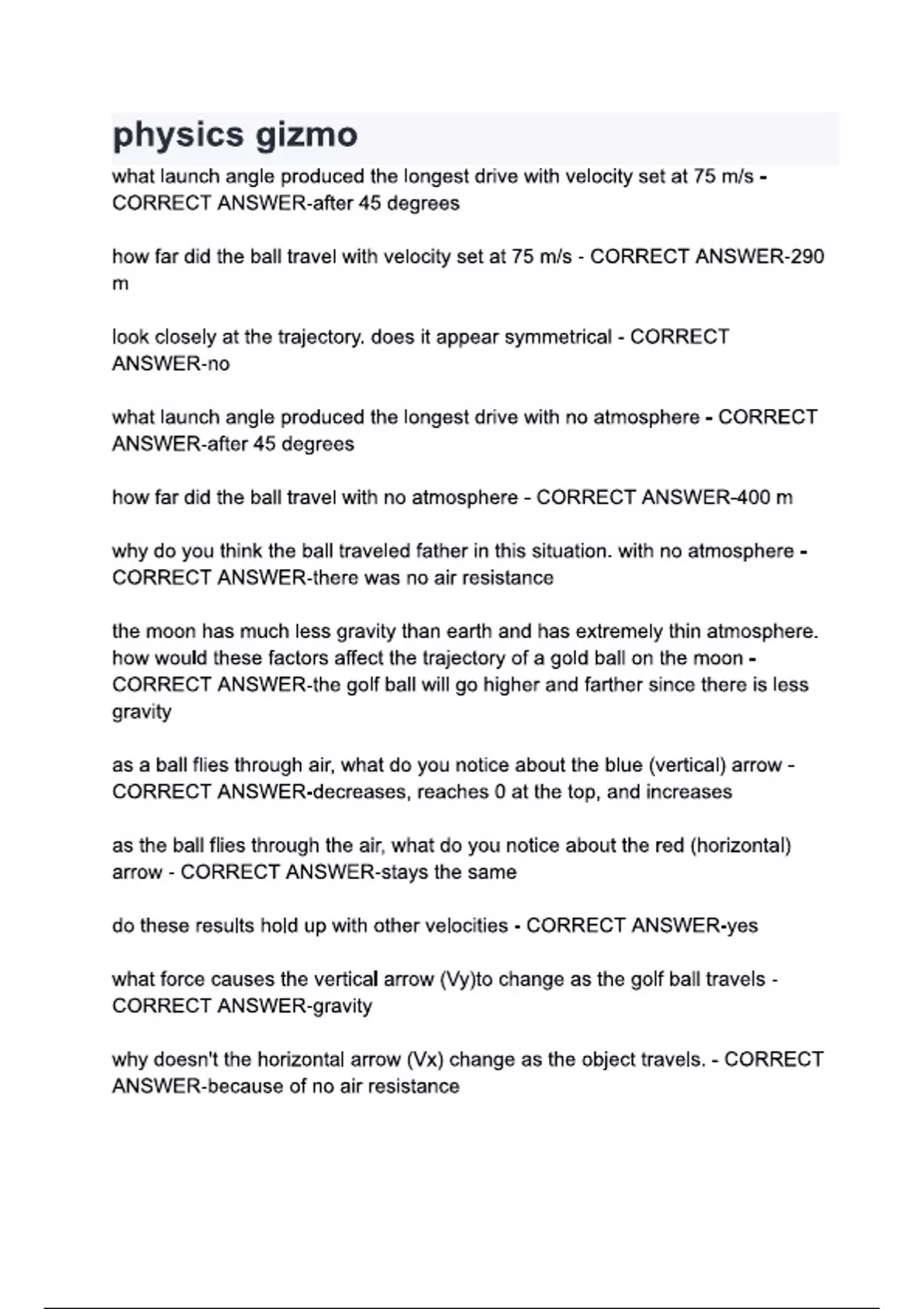 physics gizmo questions and answers.