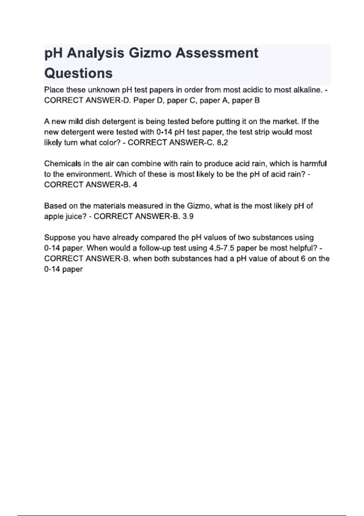 ph analysis gizmo assessment questions