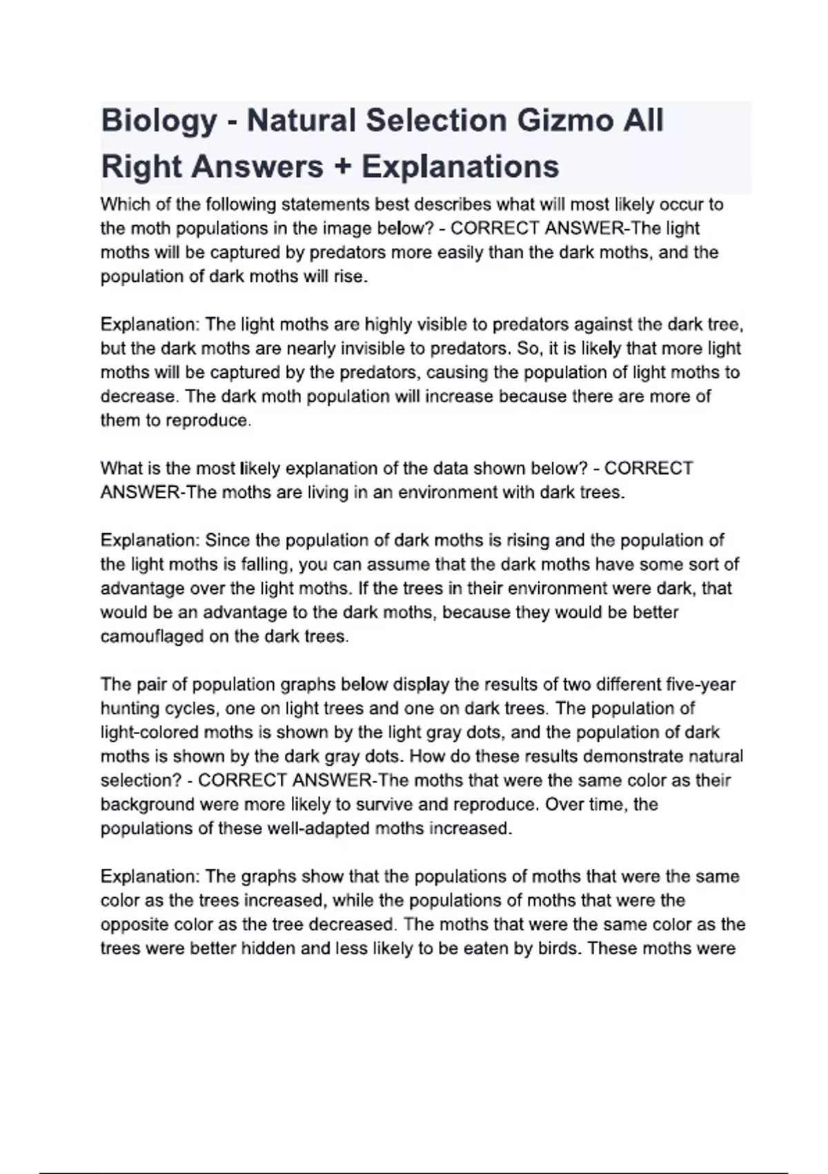 Biology - Natural Selection Gizmo All Right Answers + Explanations