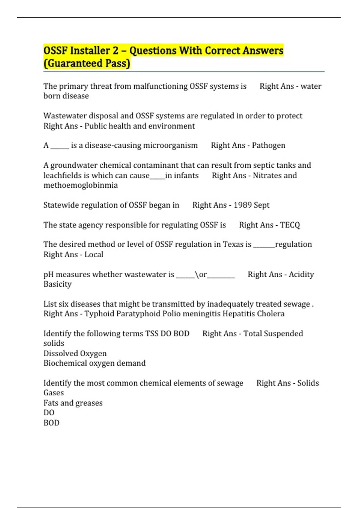 OSSF Installer 2 – Questions With Correct Answers (Guaranteed Pass)