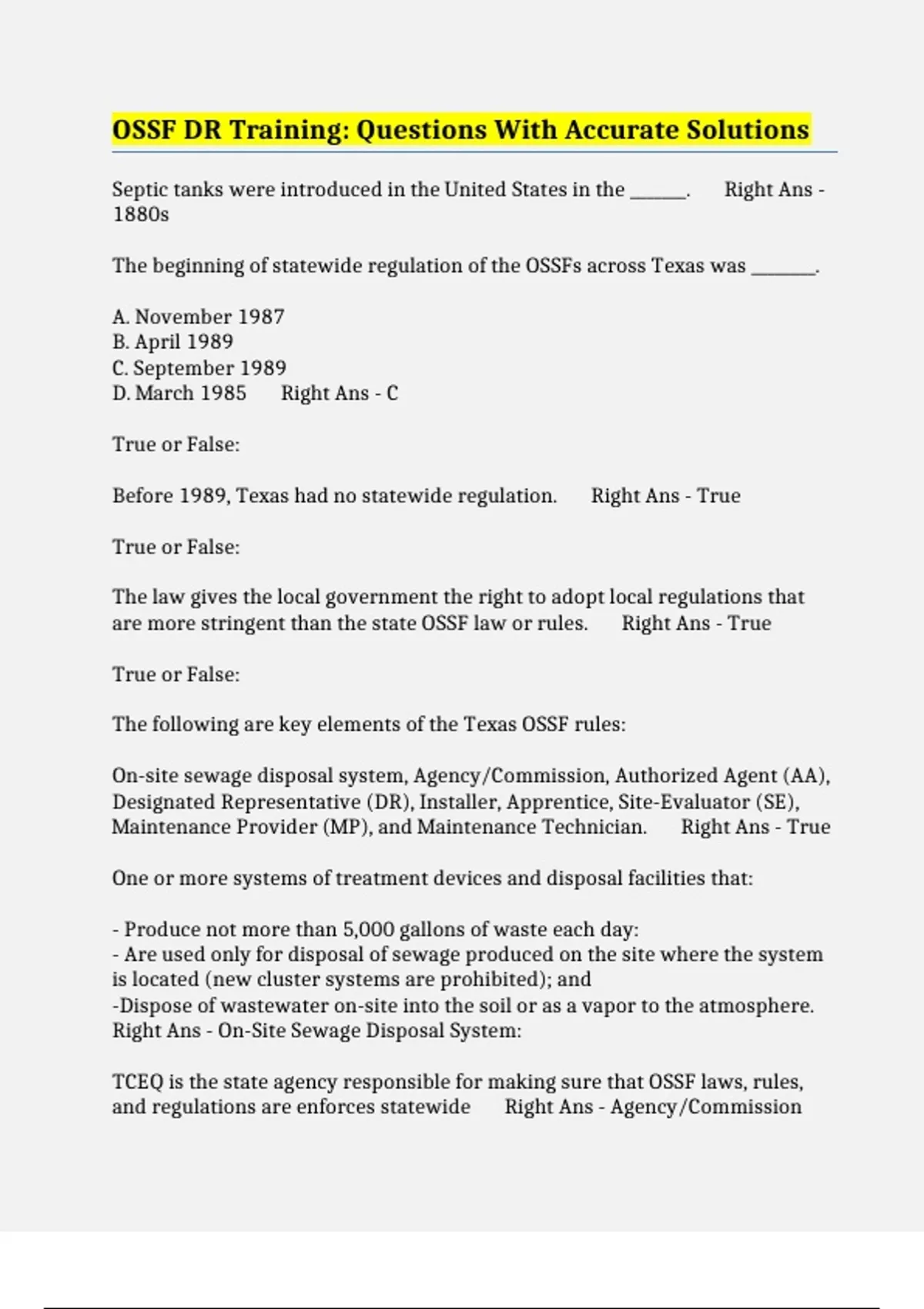 materials, and conduct inspections of OSSFs. Right Ans - Designated