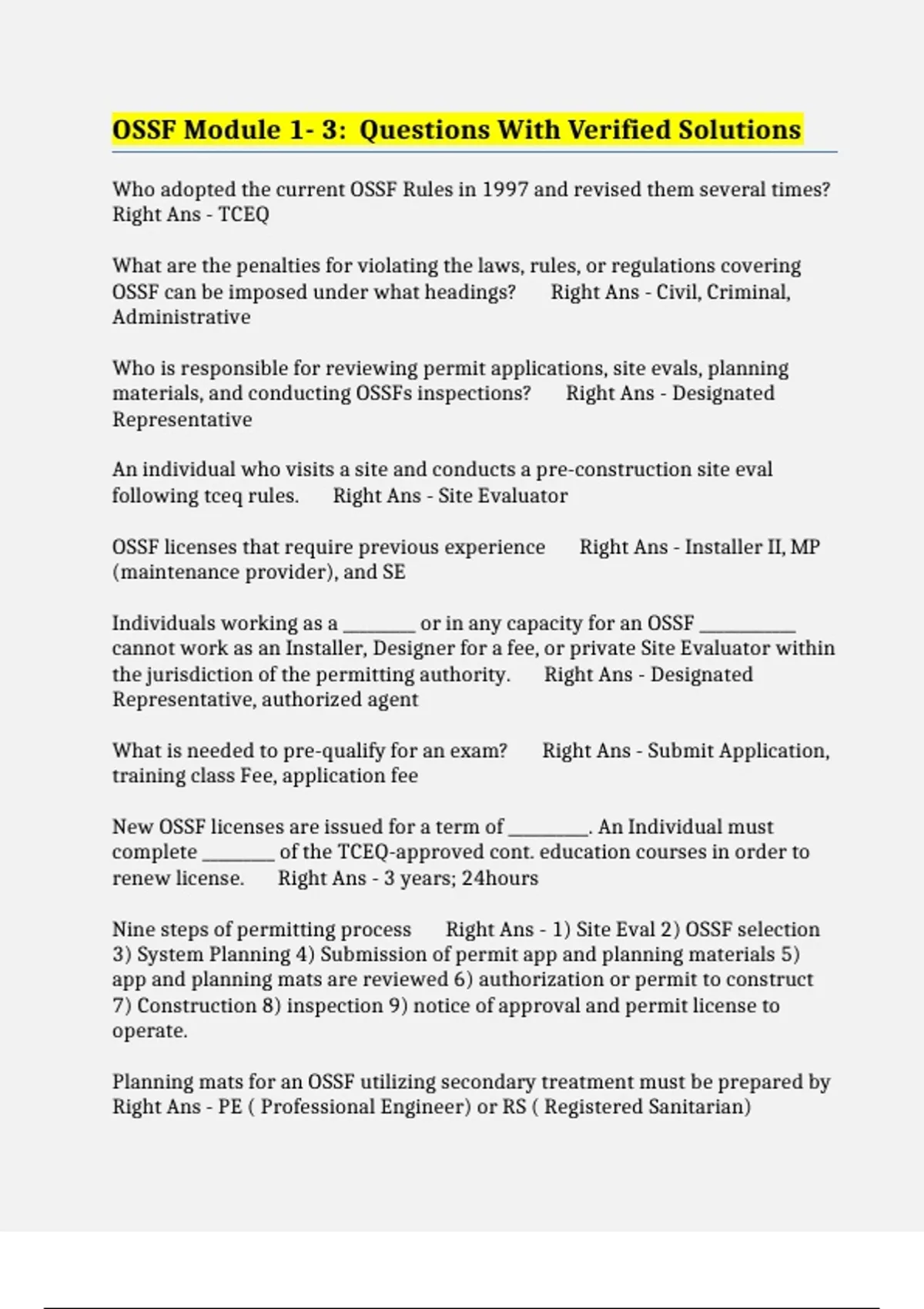 materials, and conducting OSSFs inspections? Right Ans - Designated