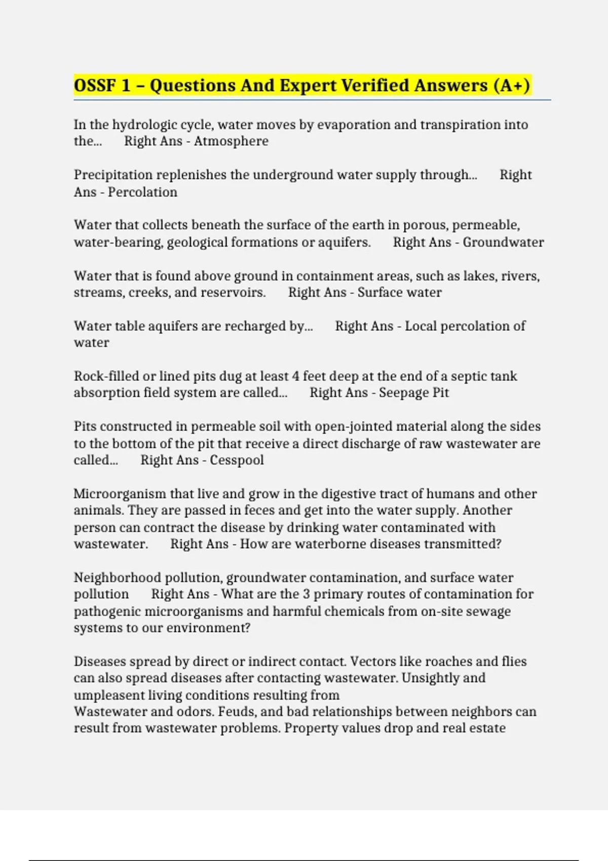 neighborhoods are fouled by wastewater. Right Ans - What problems are a