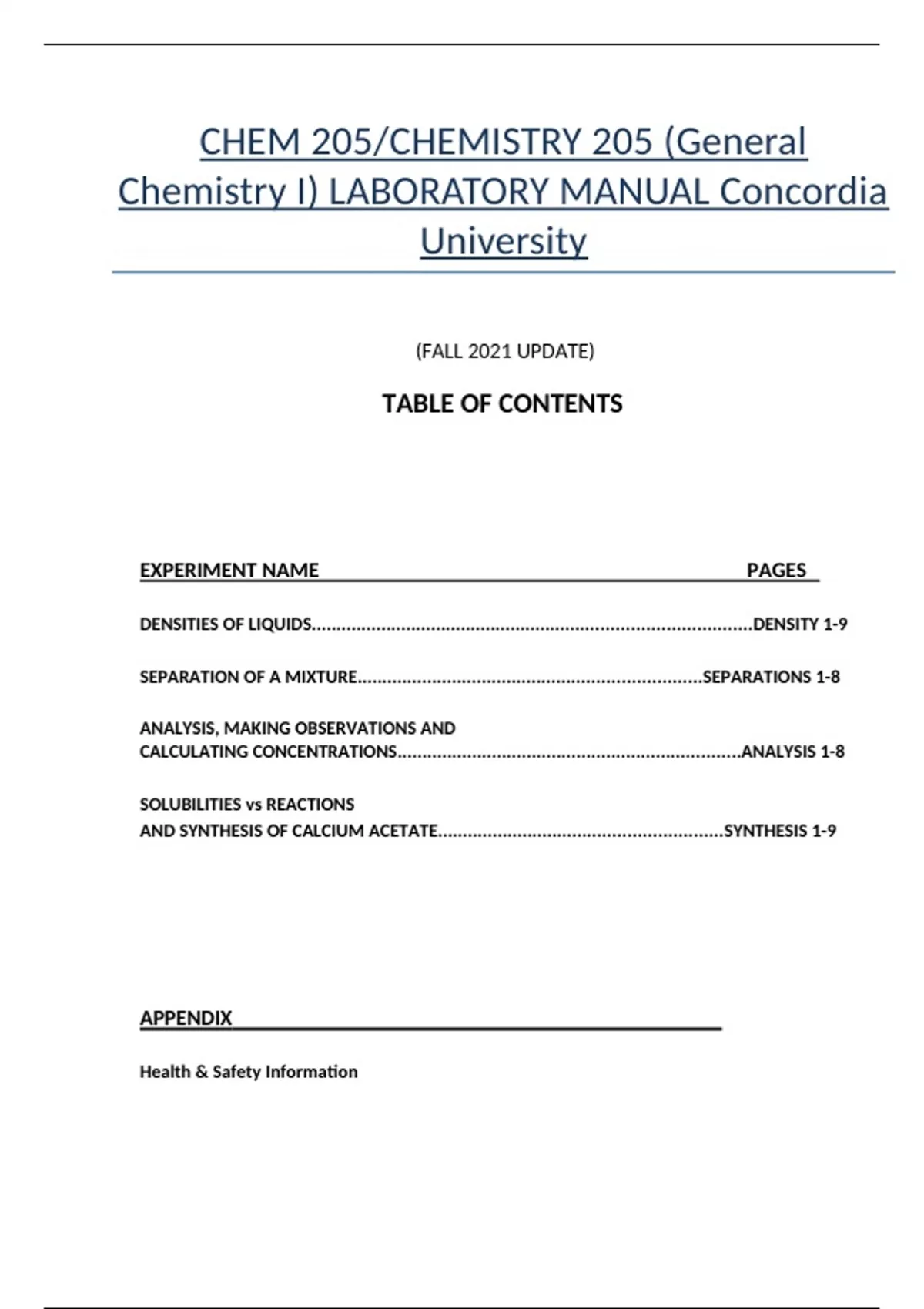 quality of products from this vendor to be suitable for the CHEM 205 laboratory. Your