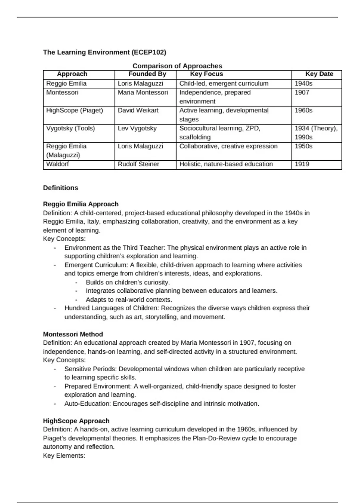 Piaget’s developmental theories. It emphasizes the Plan-Do-Review cycle to encourage