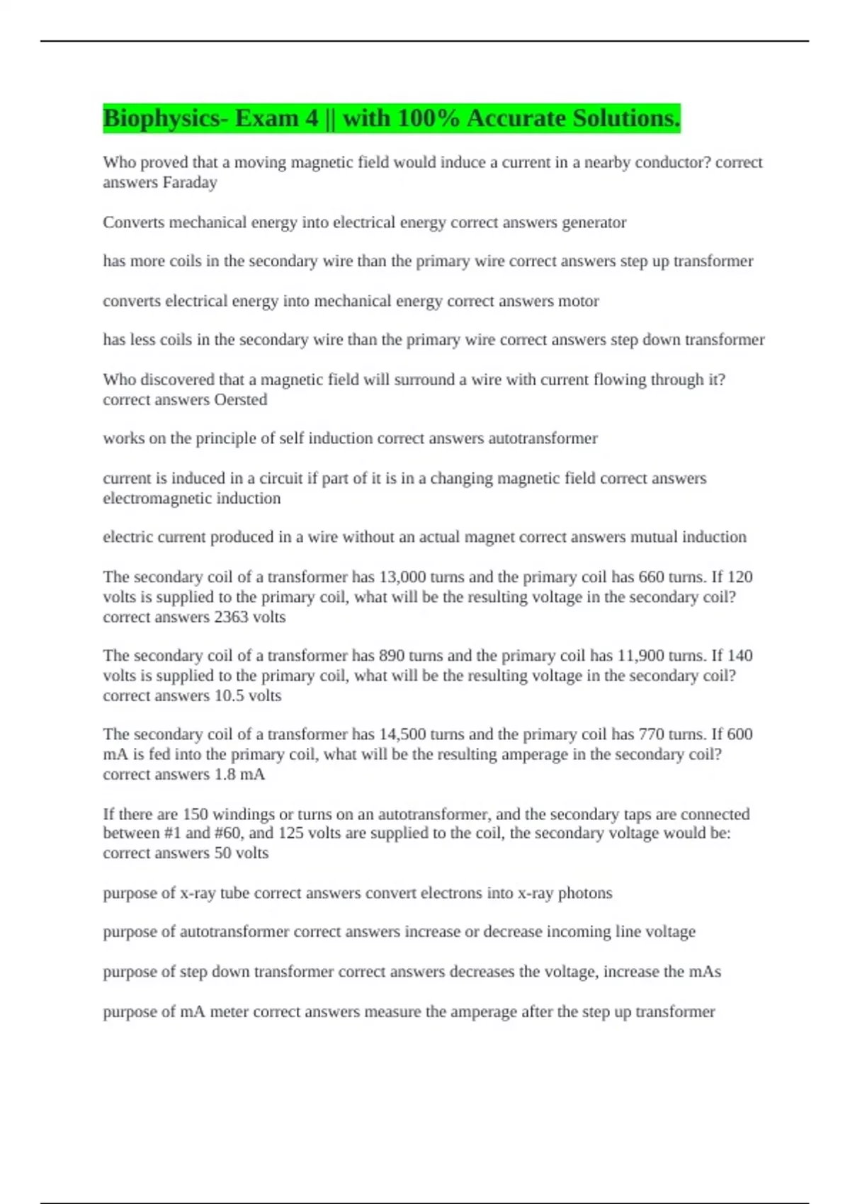has more coils in the secondary wire than the primary wire correct answers step up transformer
