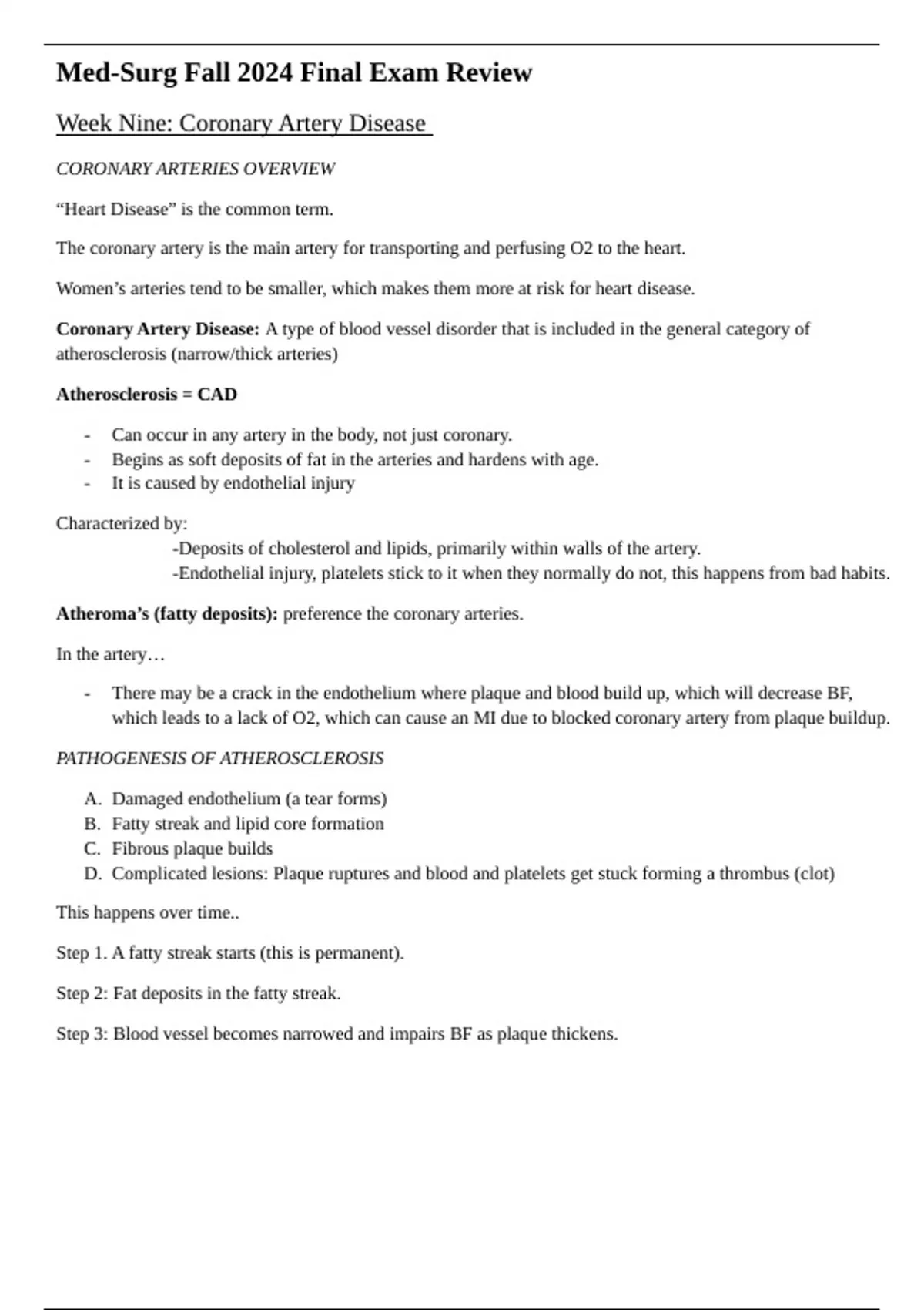 Week Nine: Coronary Artery Disease