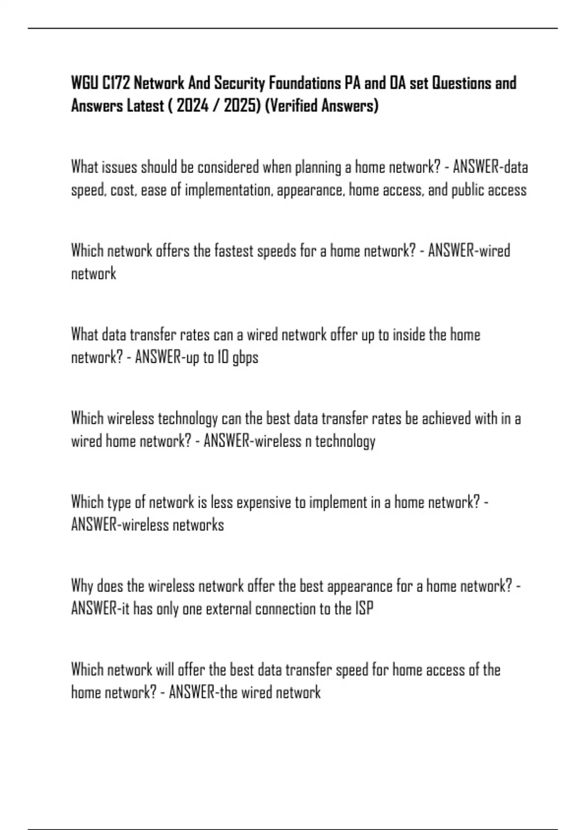 Which network offers the fastest speeds for a home network? - ANSWER-wired