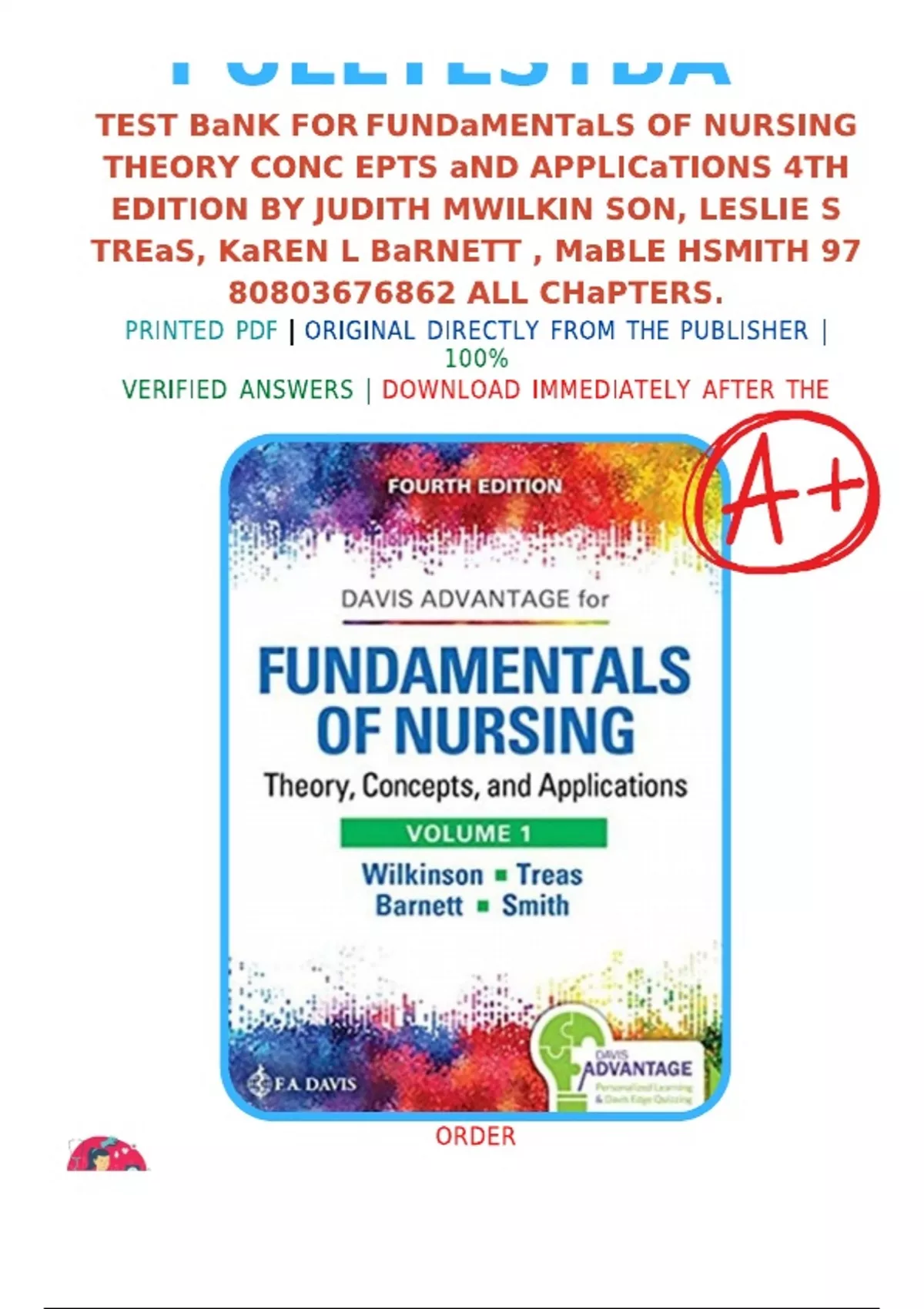 Test Bank For Fundamentals of Nursing Theory Concepts and Applications 4th Edition By Judith M Wilkinson, Leslie S Treas, Karen L Barnett