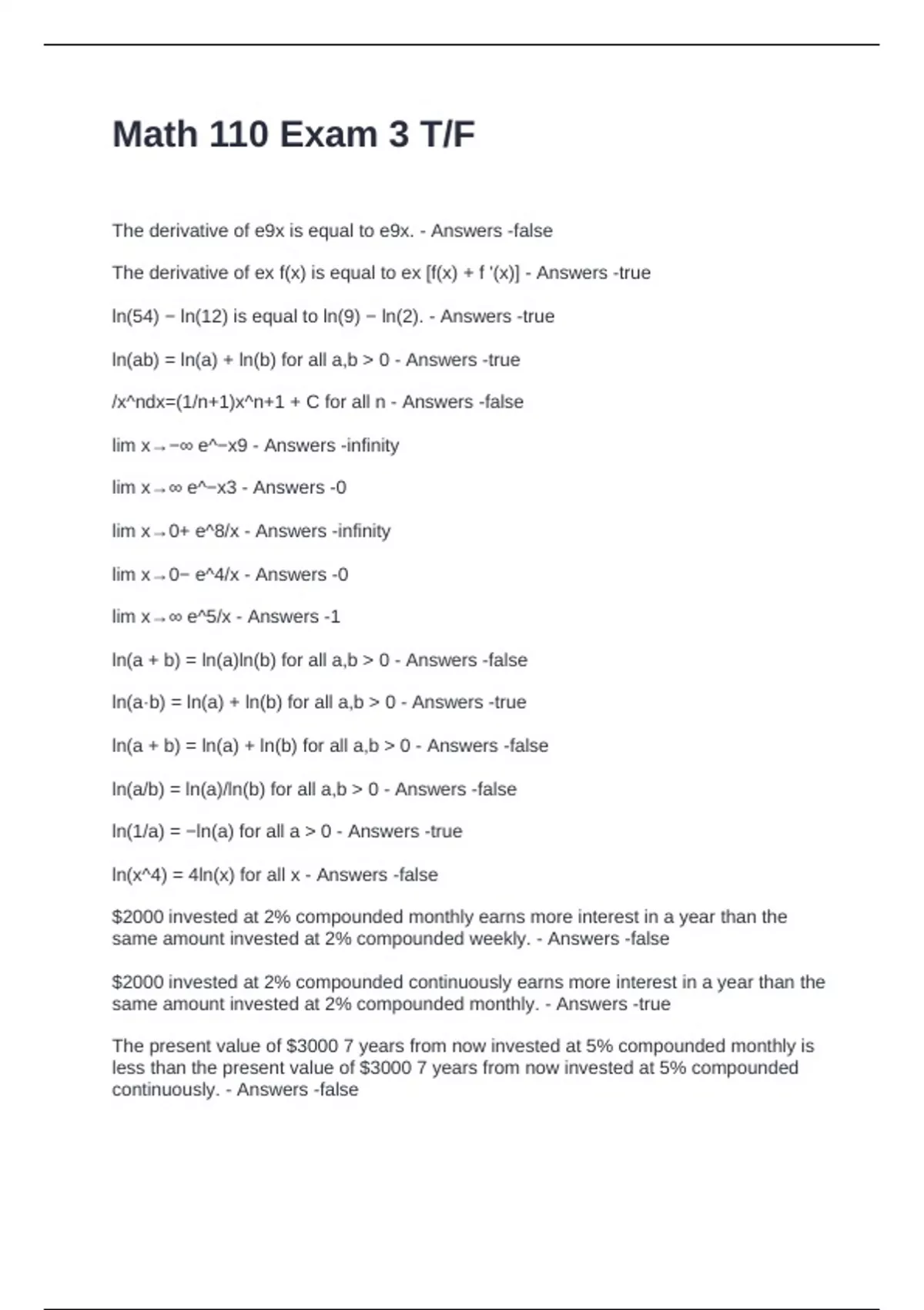 Math 110 Exam 3 T Exam Questions And Correct Answers