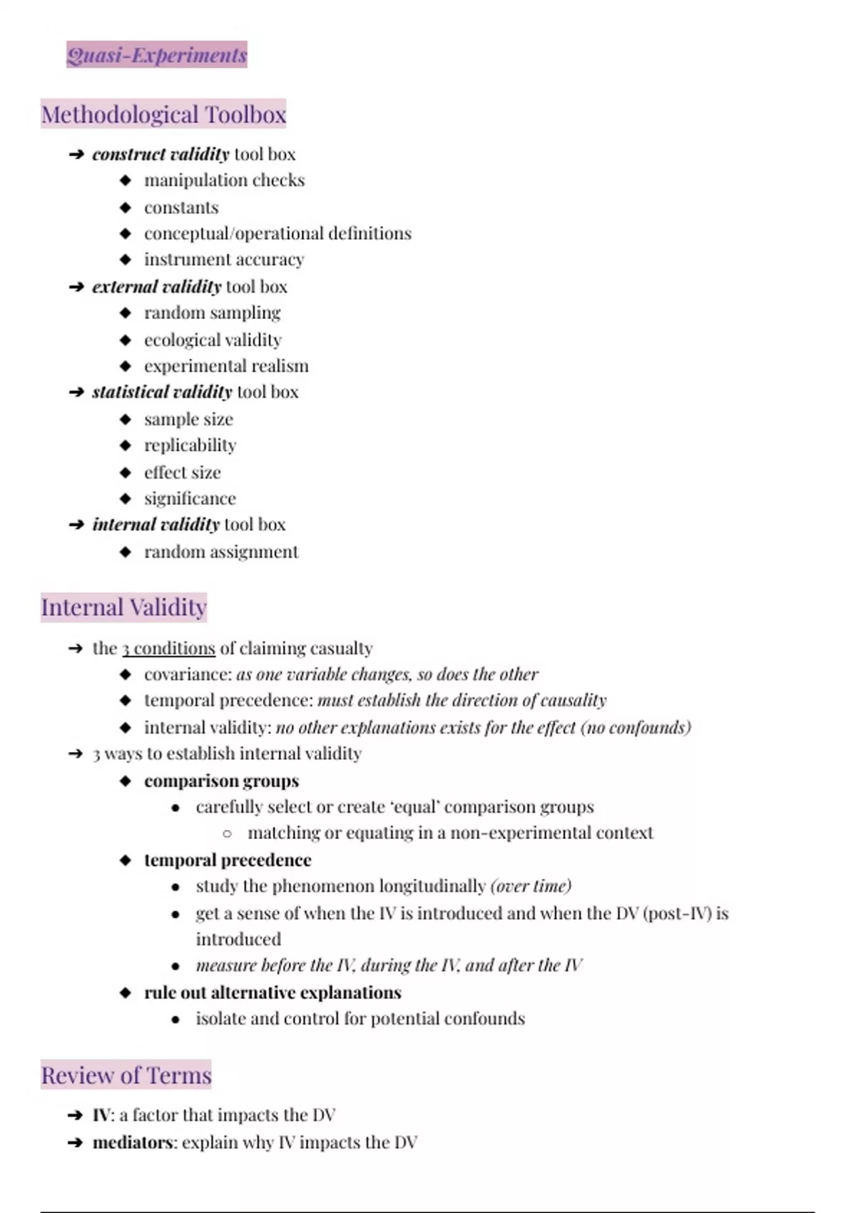 ➔ attempts to establish the three conditions of casualty in ways other than true experiments