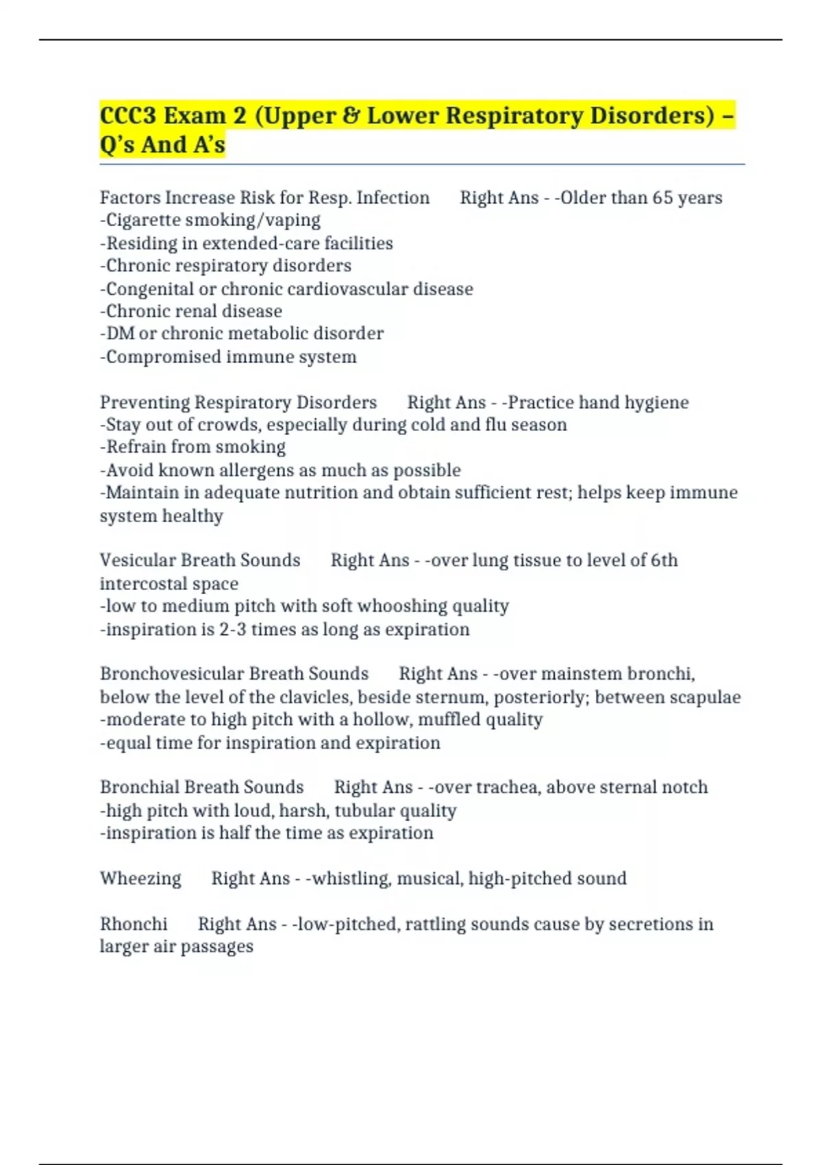 CCC3 Exam 2 (Upper & Lower Respiratory Disorders) – Q’s And A’s