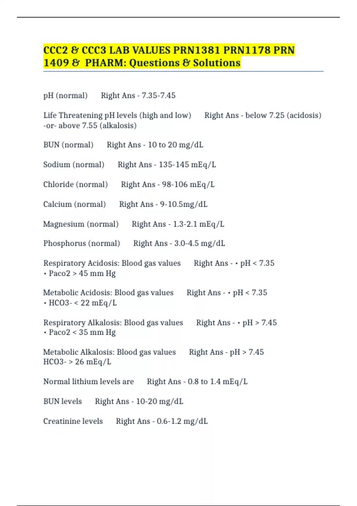 Magnesium (normal) Right Ans - 1.3-2.1 mEq/L