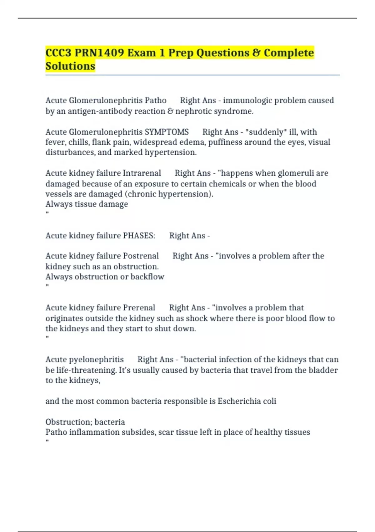 Acute kidney failure Prerenal Right Ans - "involves a problem that