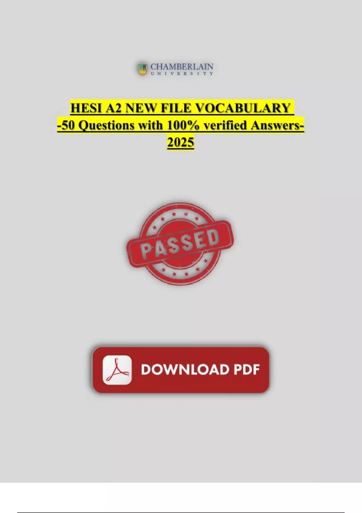HESI A2 NEW FILE VOCABULARY -50 Questions with 100% verified Answers-2025