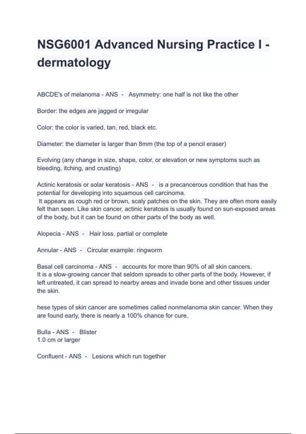 NSG6001 Advanced Nursing Practice I - dermatology Questions & Answers 2025/2026 ( A+ GRADED 100% VERIFIED)