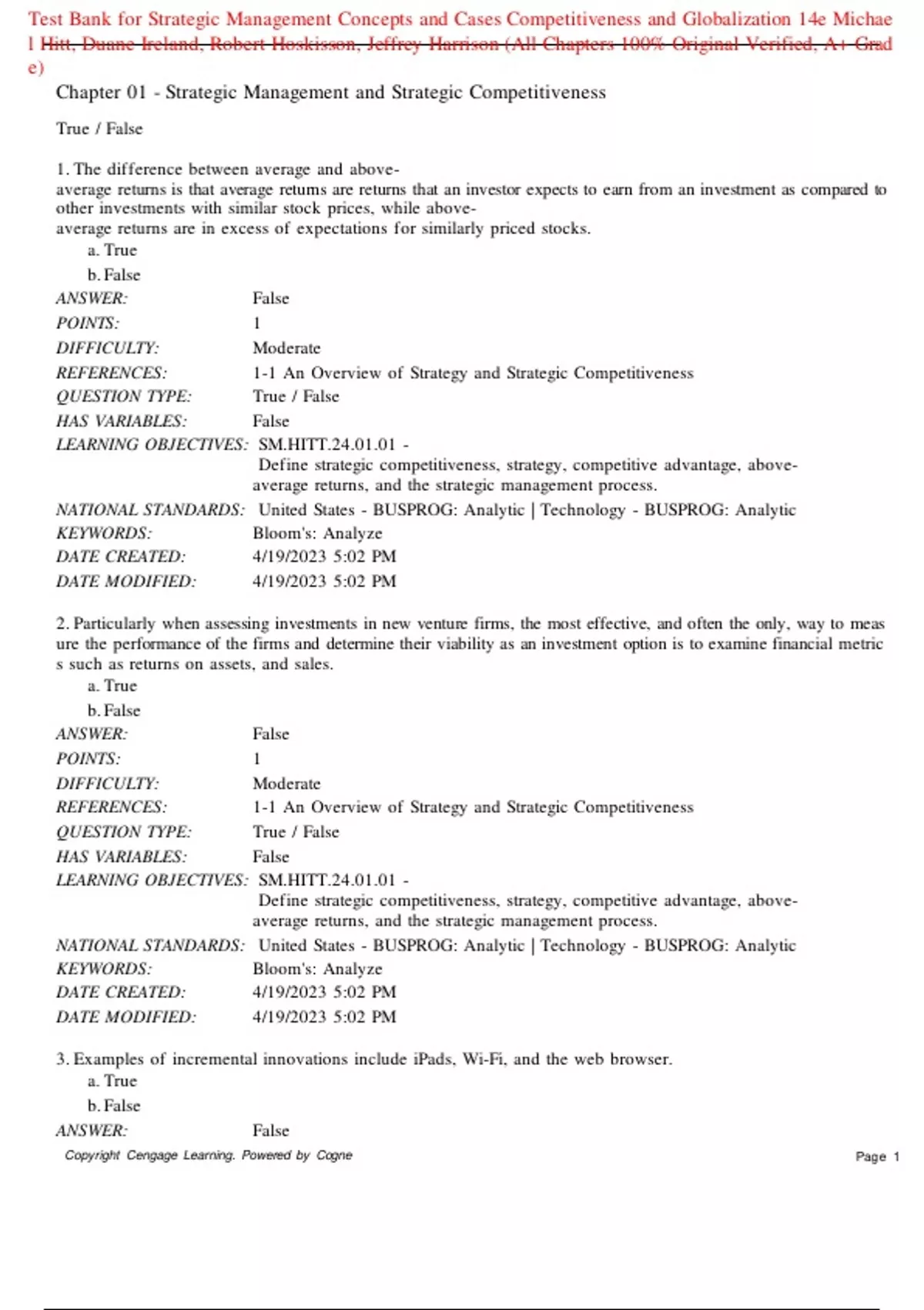 TestmBank mformStrategic mManagementmConceptsmand mCasesmCompetitiveness mand mGlobalization m14emMichae
