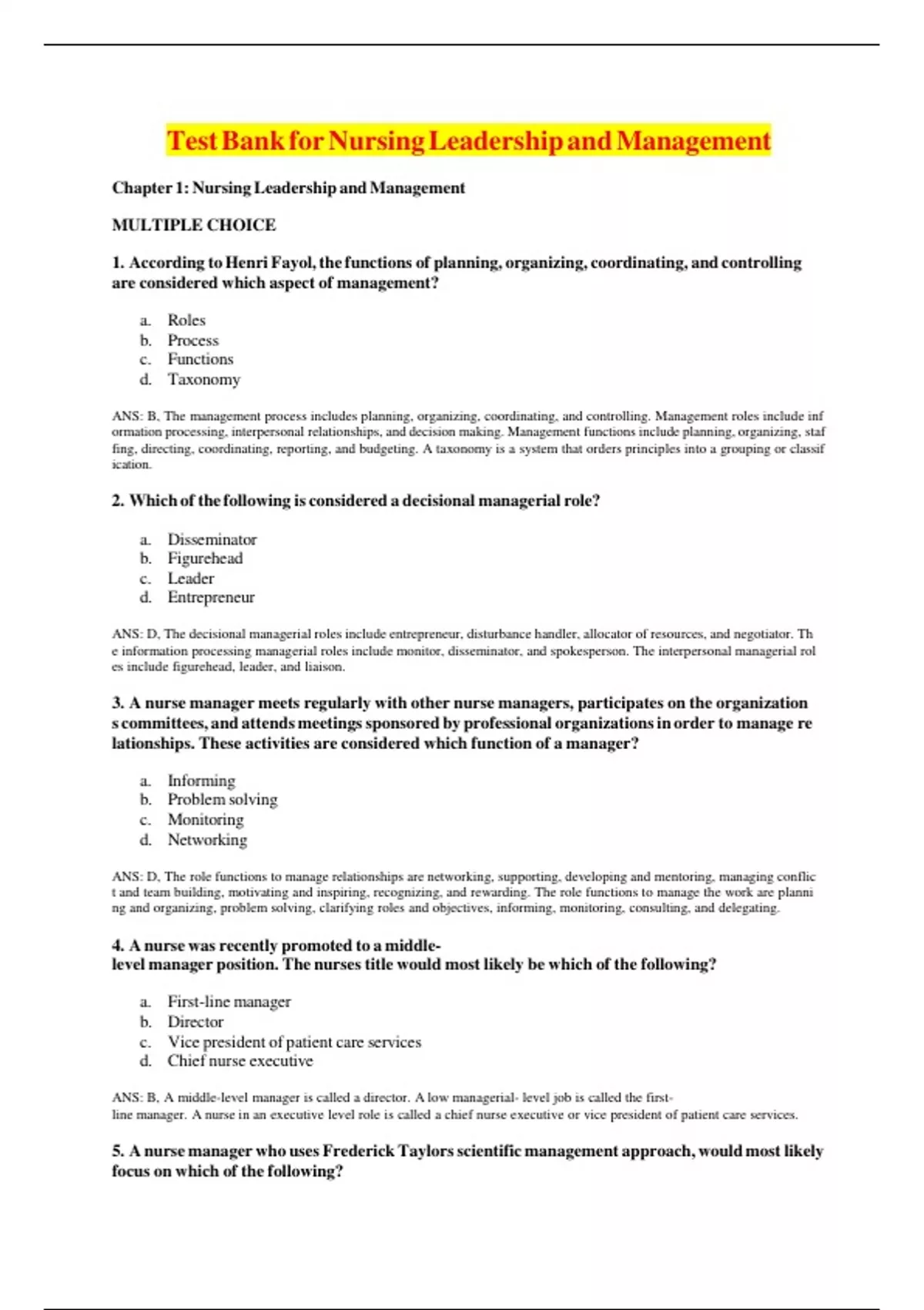 ANS:vB,vThevmanagementvprocessvincludesvplanning,vorganizing,vcoordinating,vandvcontrolling.vManagementvrolesvincludevinf
