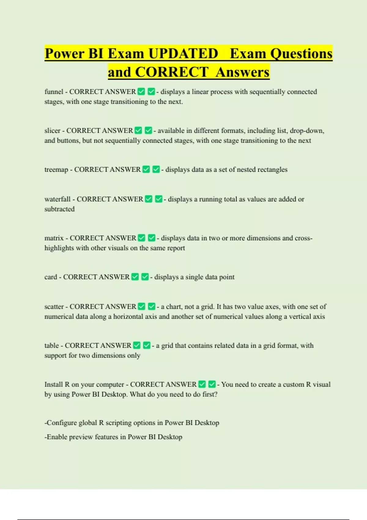 Power BI Exam UPDATED Exam Questions and CORRECT Answers