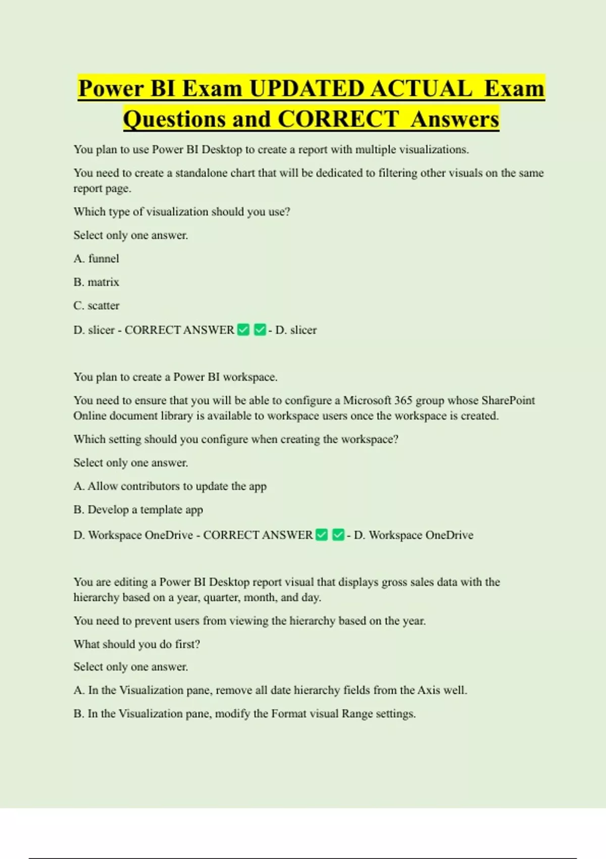 Power BI Exam UPDATED ACTUAL Exam Questions and CORRECT Answers